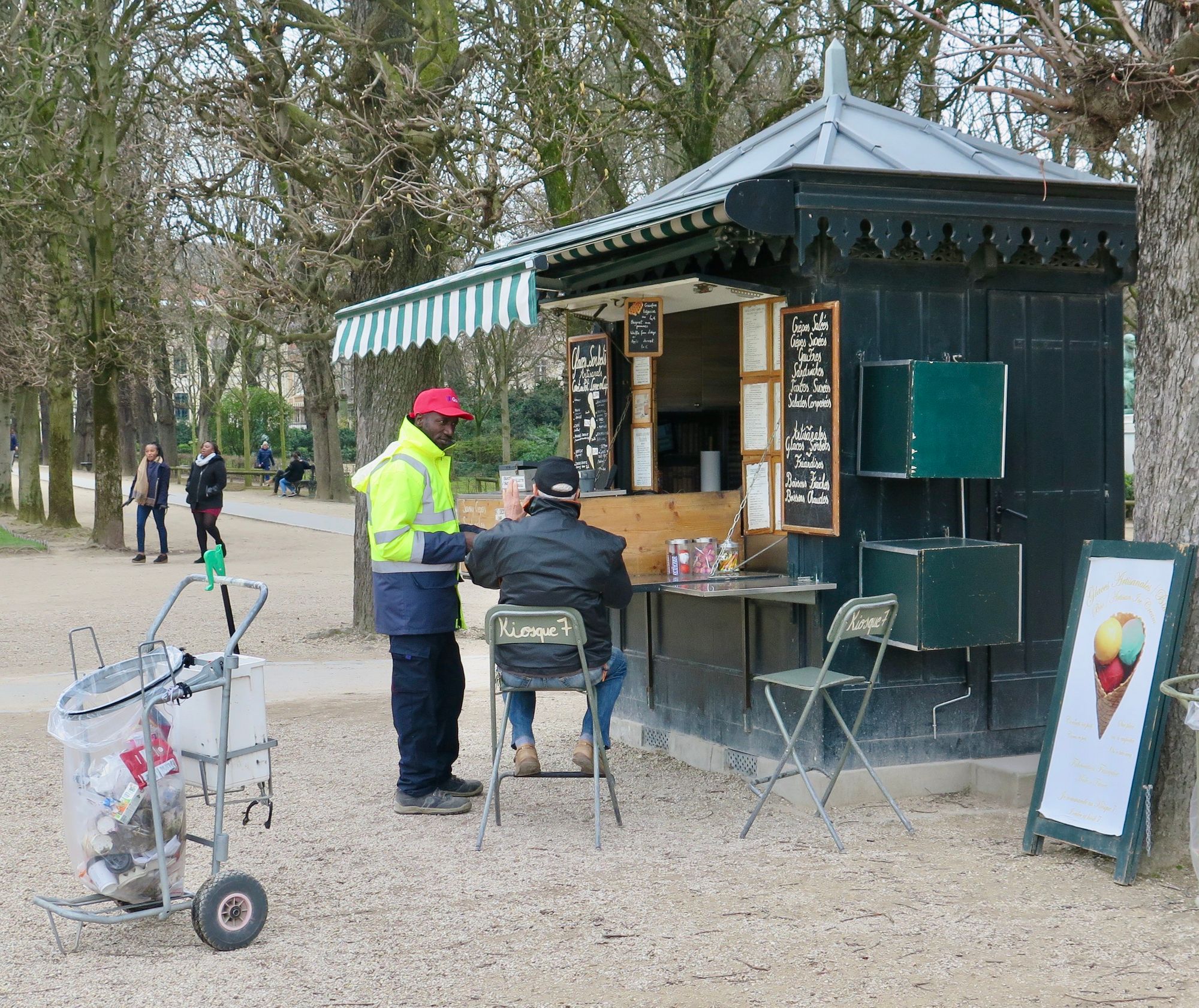 But there are a multitude of other reasons that people come to Luxembourg Gardens—cafes, playgrounds, games, sports facilities, cultural exhibits, art, a puppet theatre, bee hives, a fruit orchard. Each of these places have their own eco system.