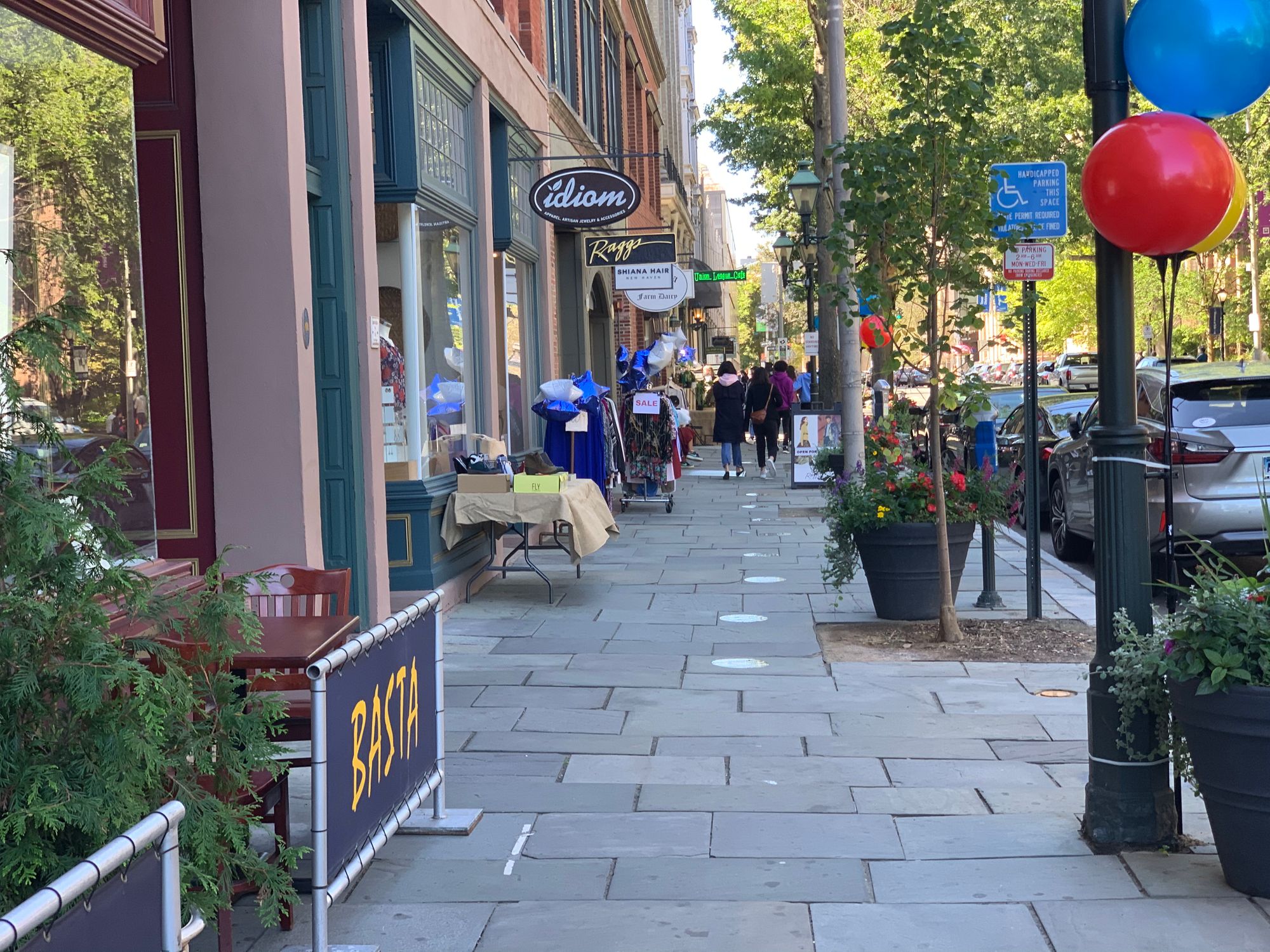 By providing flexible space for a variety of activities like outdoor seating, displays and other retail activity, the process of widening sidewalks opened up the street for people. This effect was magnified with the subsequent narrowing of vehicle lanes on the street to 9.5 feet. Though this still accommodated some parking, it significantly slowed down the traffic passing through. In so doing, it also created a destination; one that would soon become a de facto entrance to Yale from the downtown.
