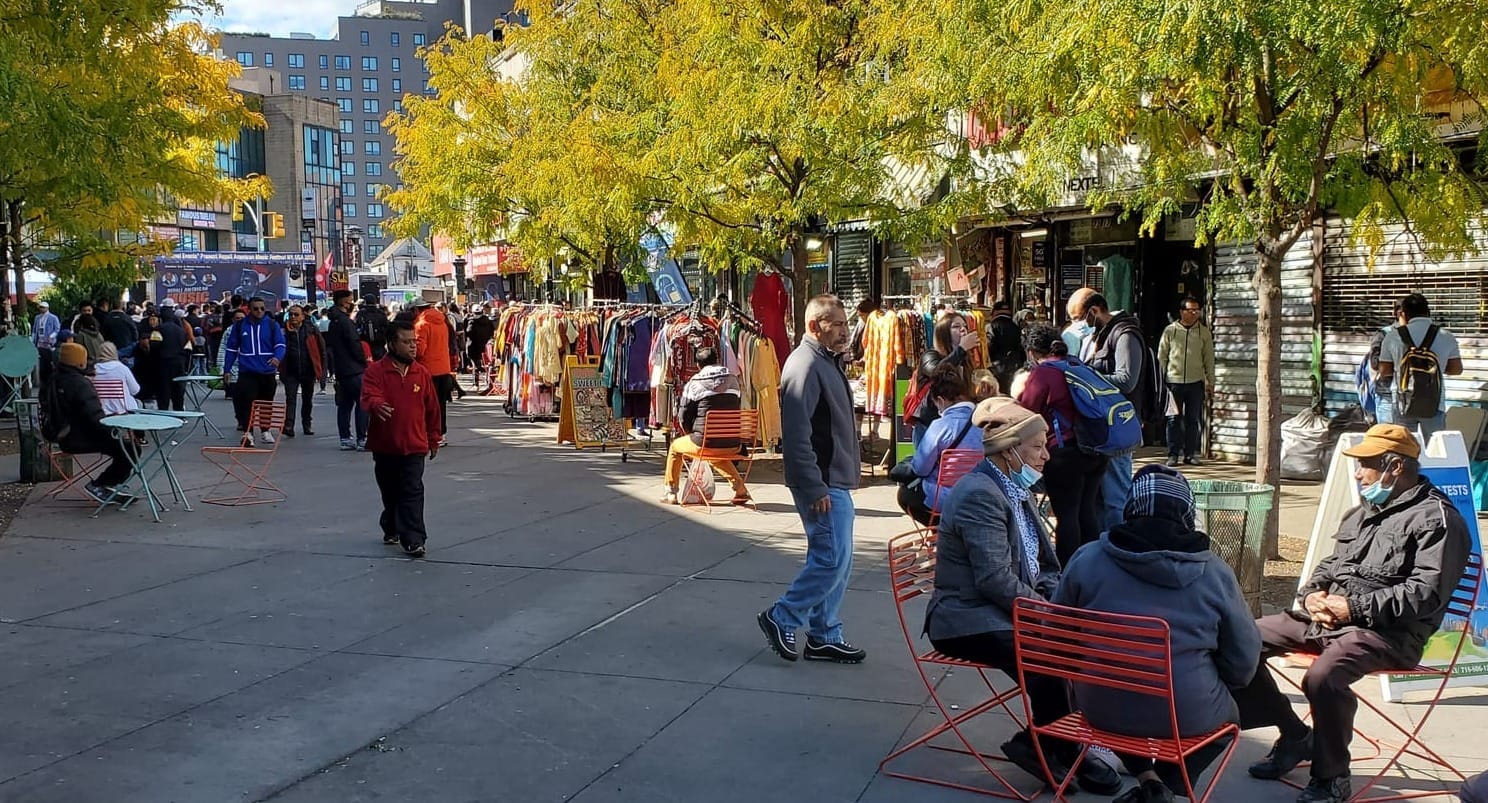 During the pandemic, approximately 80 street vendors from Latin America began selling their goods in Corona Plaza, Queens. Their activity breathed new life into the previously underutilized area and attracted community activity. Unfortunately, they were shut down in 2023 due to lack of formal permits. However, following public outcry, the vendors were brought back in a legal way. Today, Corona Plaza is a thriving formal marketplace.