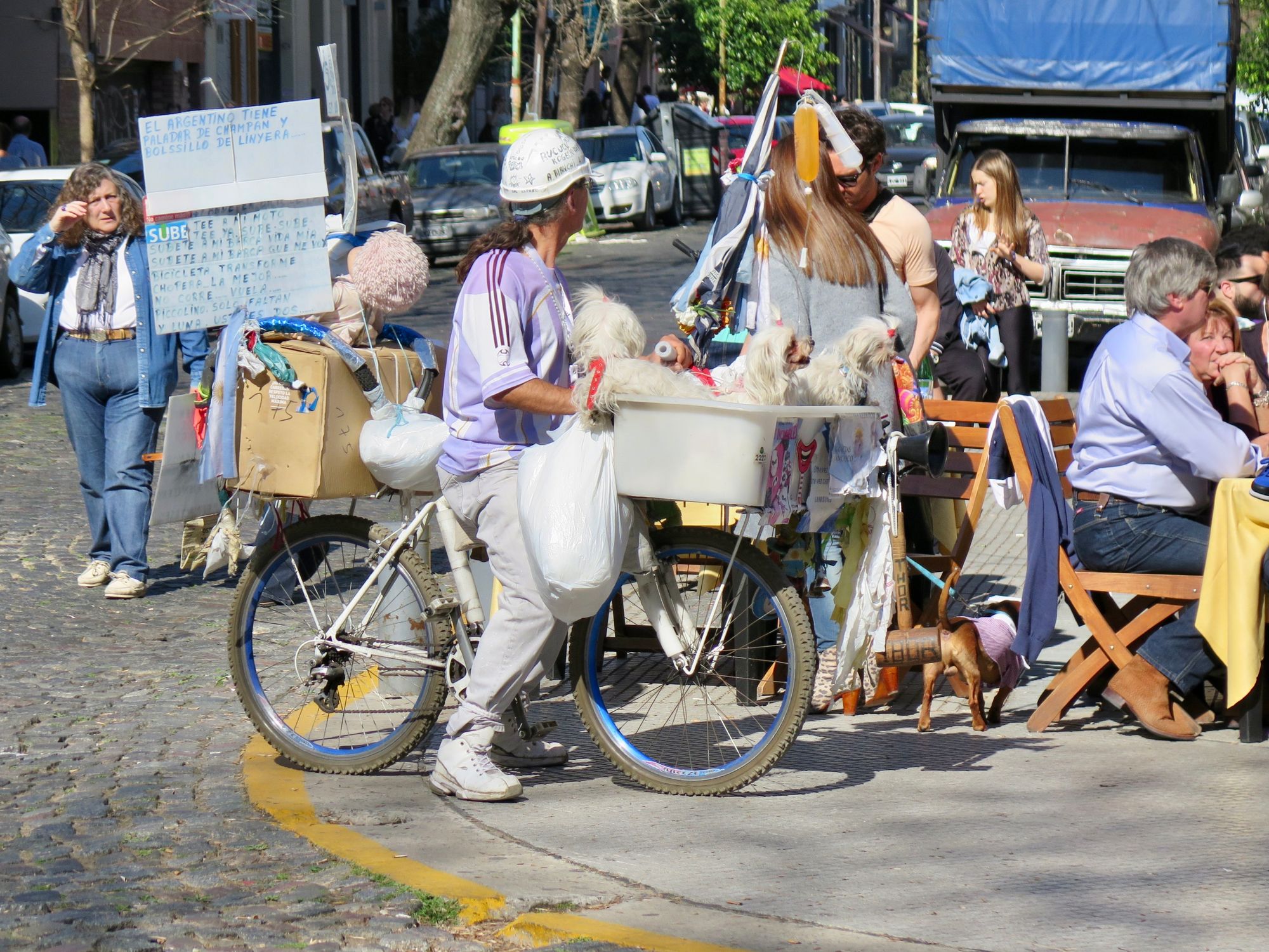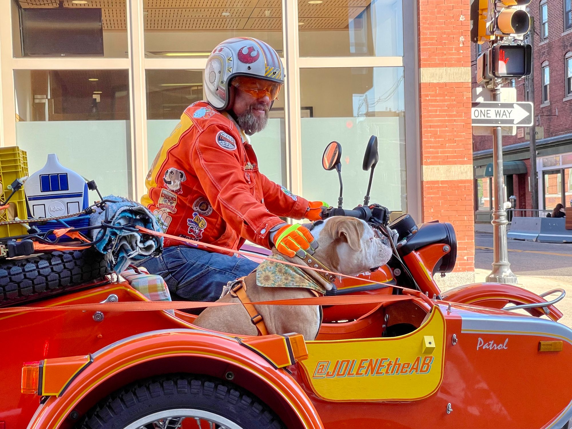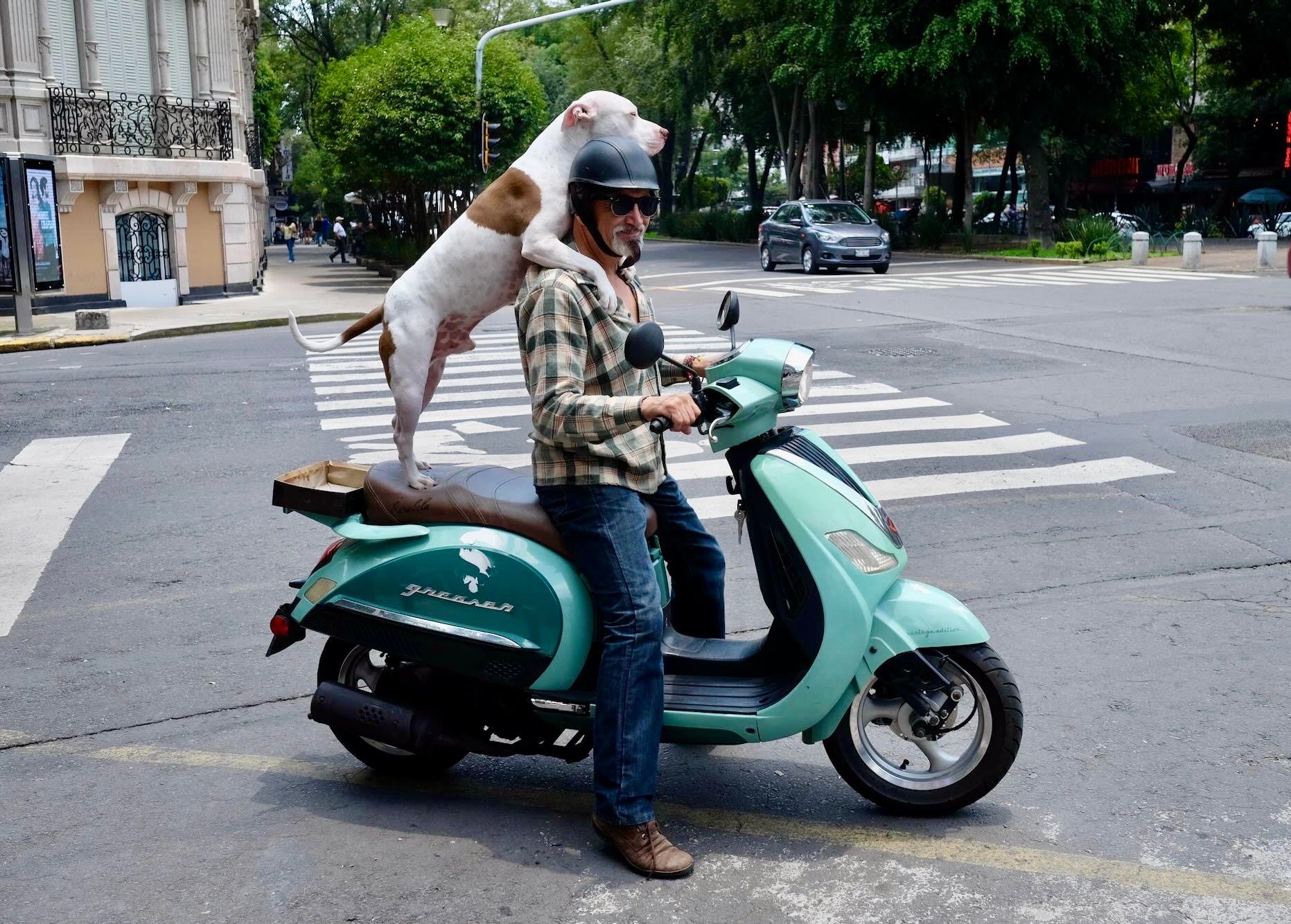 Dogs and their owners riding together to explore the city.