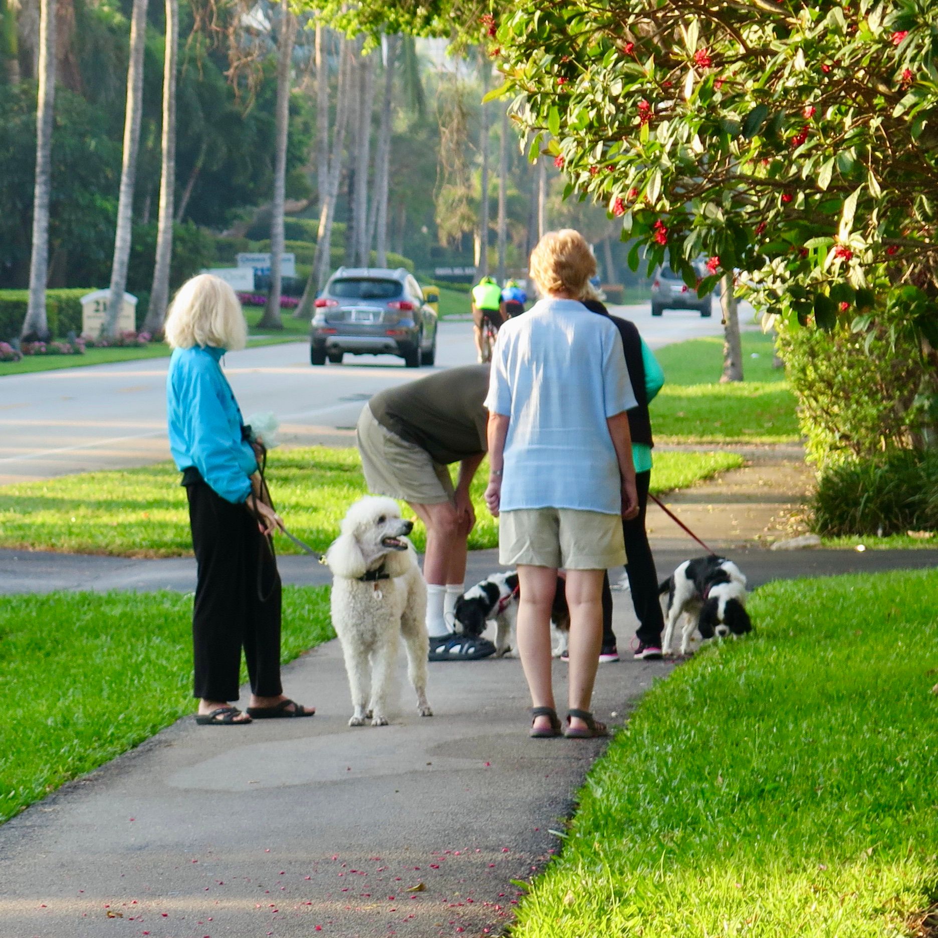 Just being in an environment where people and pets are easily comnecting in such wonderful ways says a lot about a community...Delray Beach as a whole provides an atmosphere where residents, visitors, and even pets can easily connect and feel that the city is their home. A significant number of people walking in the streets have pets with them and/or kids in strollers. Many are in groups.