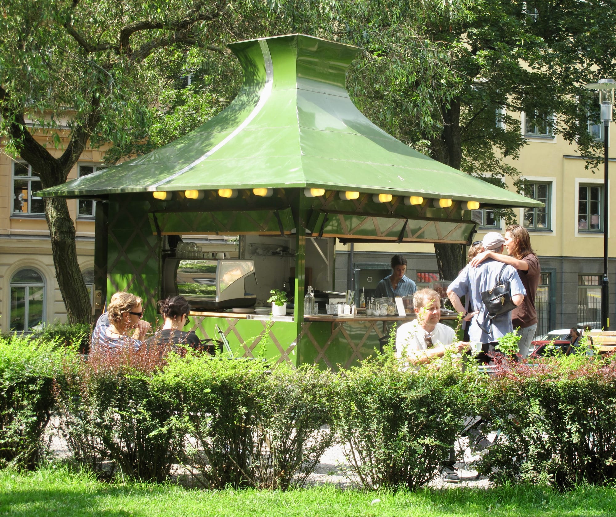 We sometimes call these buildings pavilions, other times kiosks, stalls, or even the less common term "summerhouses." While they can come in different shapes and sizes, what they have in common is that they are not lightweight temporary structures like market tents or stands, nor are they fully permanent imposing edifices like apartment buildings. They are something in between – structures that add weight and presence to a place but that can be easily shaped and adapted to support whatever uses will elevate it.