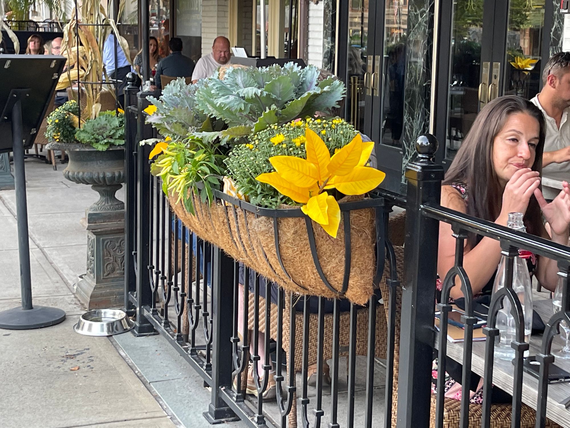 The restaurant is set above the street, adding a sense of being aloof and above all the activity below. Extending the sidewalks and having an extended cafe along the widened Atlantic Avenue would transform this into an iconic destination.