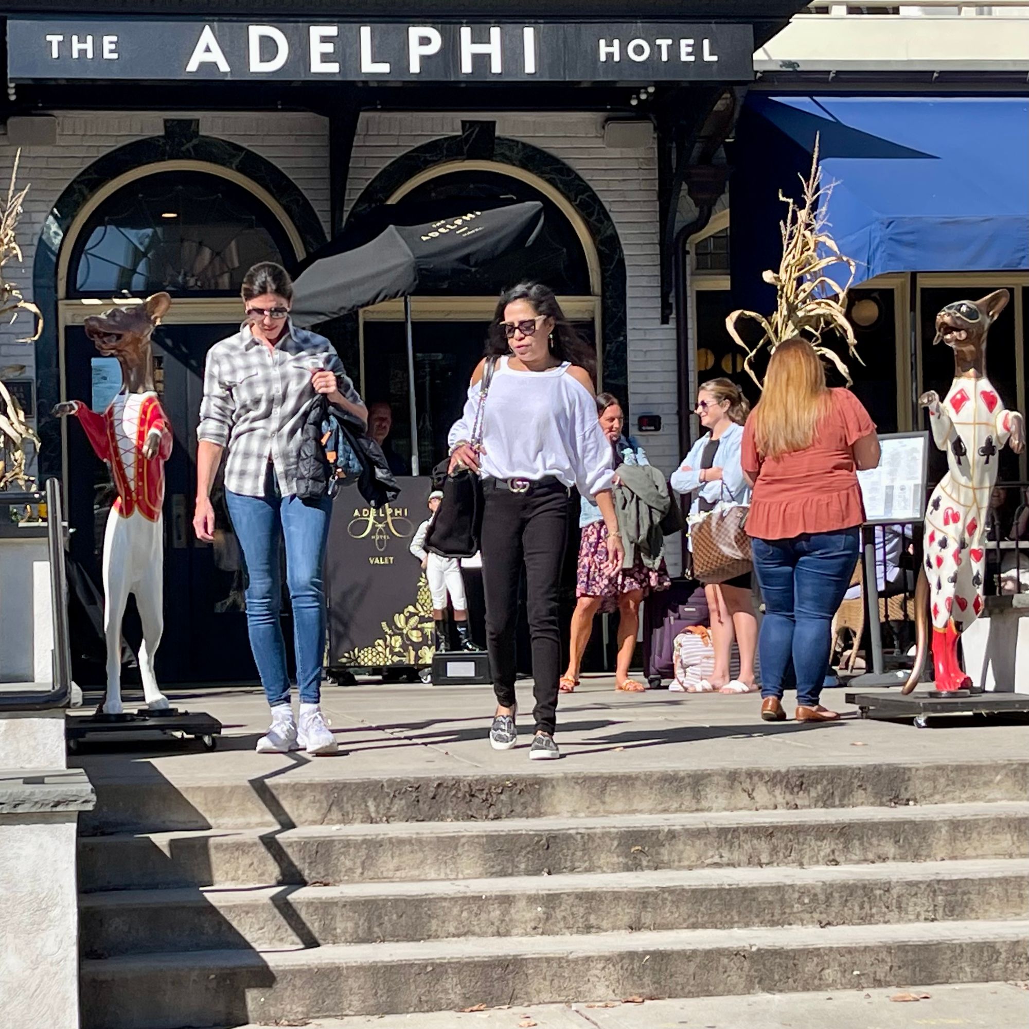 The liveliness of the sidewalk plaza/porch in front of the historic Adelphi Hotel is a significant part of why the hotel is a local landmark. The Colony can learn a lot from Adelphi about how to enliven the public space around its entrance.