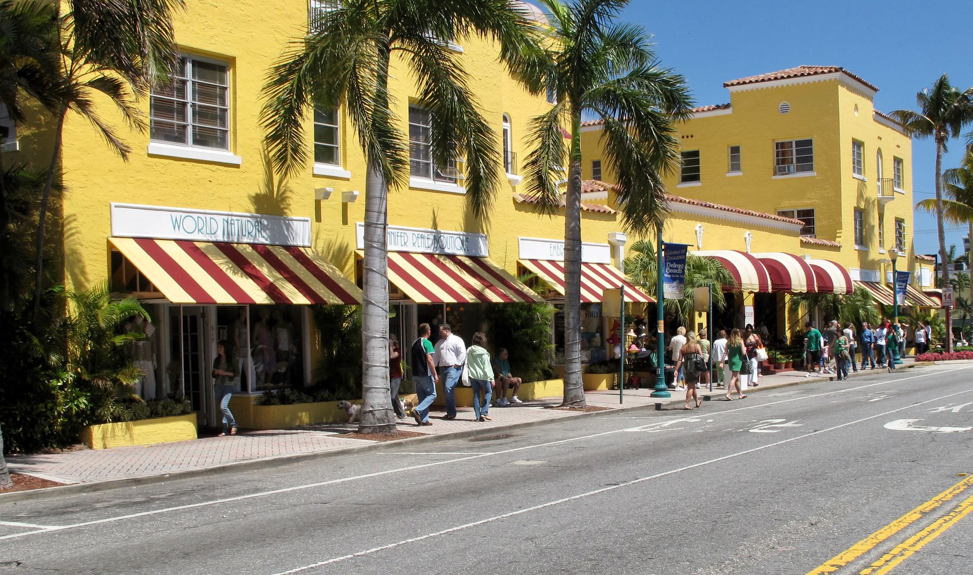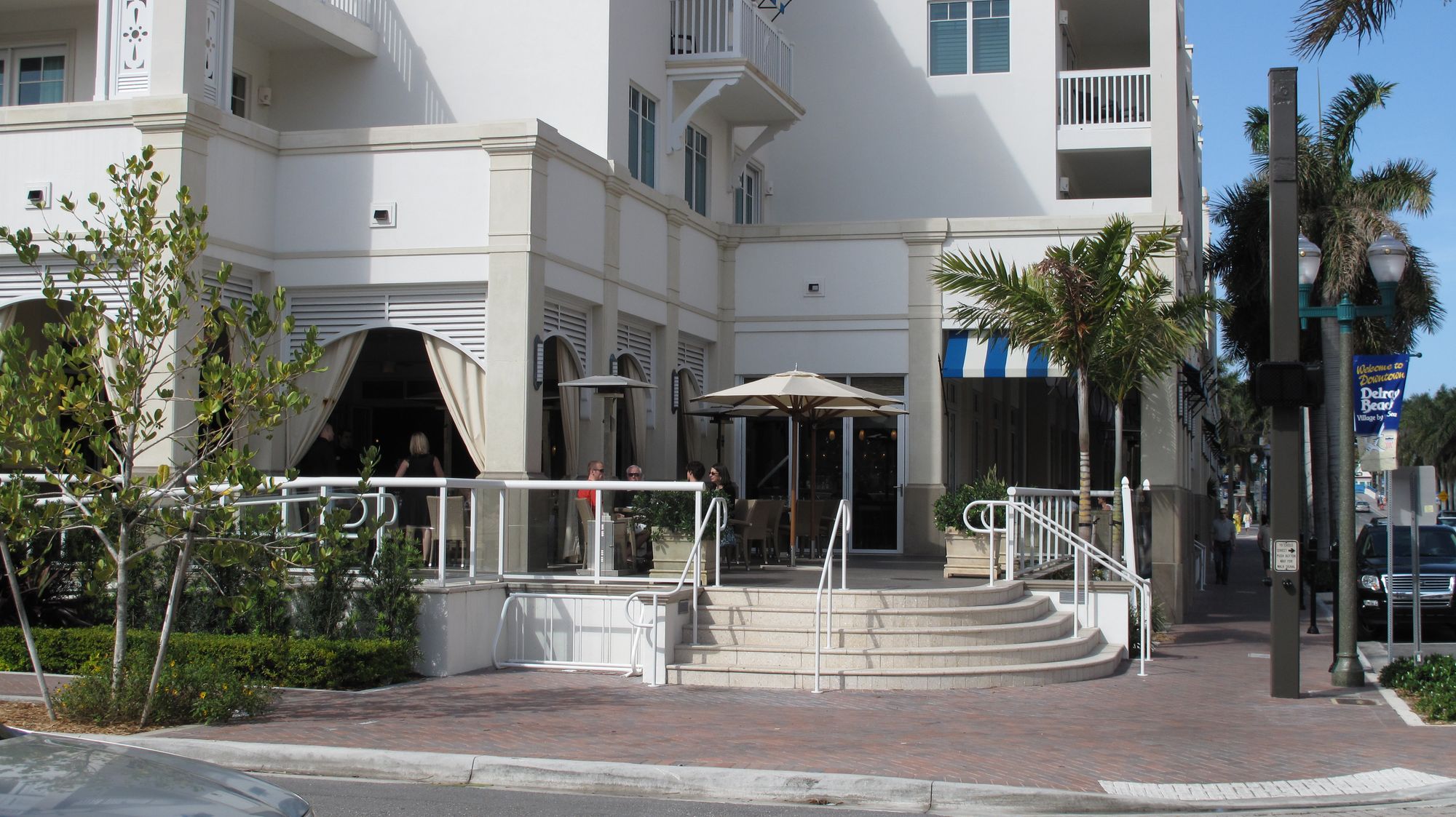 The one hotel in Delray that adds value rather than subtracts it is The Colony Hotel. This yellow building with iconic red and yellow striped awnings that create a sunny, playful and relaxing look is a major attraction and asset in the downtown area. Its unique appearance makes it recognizable and memorable. This hotel is a main anchor along Atlantic Avenue, the main street which leads from well into the interior of town right to the ocean.