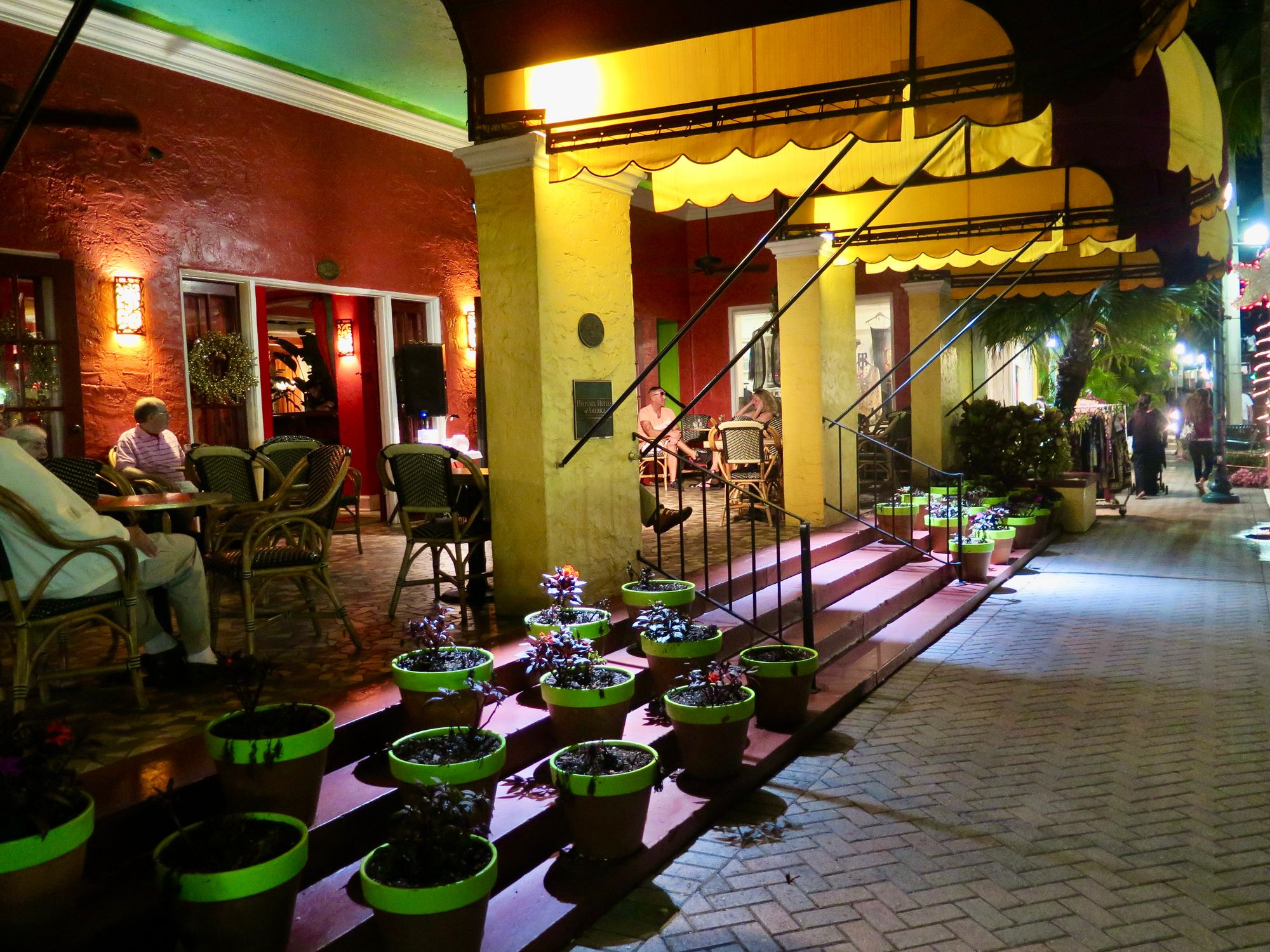 The one hotel in Delray that adds value rather than subtracts it is The Colony Hotel. This yellow building with iconic red and yellow striped awnings that create a sunny, playful and relaxing look is a major attraction and asset in the downtown area. Its unique appearance makes it recognizable and memorable. This hotel is a main anchor along Atlantic Avenue, the main street which leads from well into the interior of town right to the ocean.
