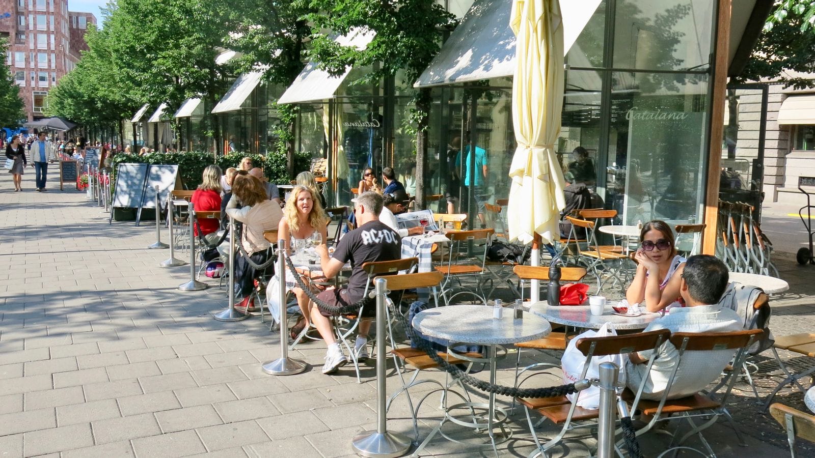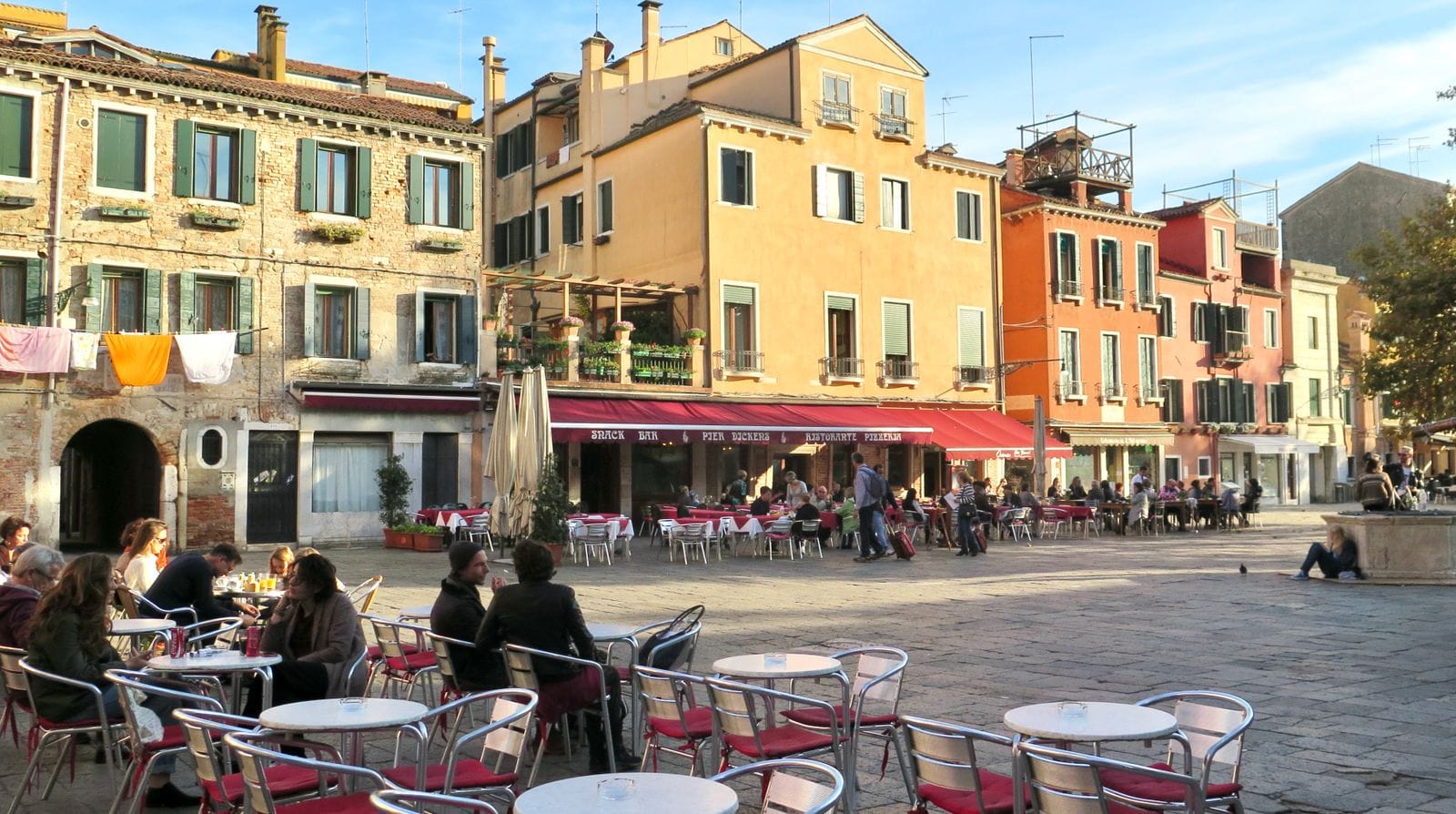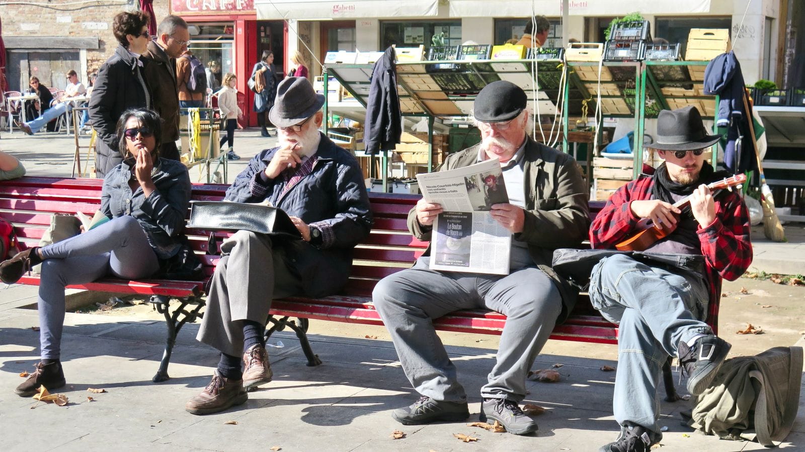 A square should be a place people enjoy spending time in, not just a place to pass through. Any time you want to encourage people to hang around, you need to offer places to sit. That means the best squares are those with various kinds of seating – benches, steps, and chairs of all kinds.
