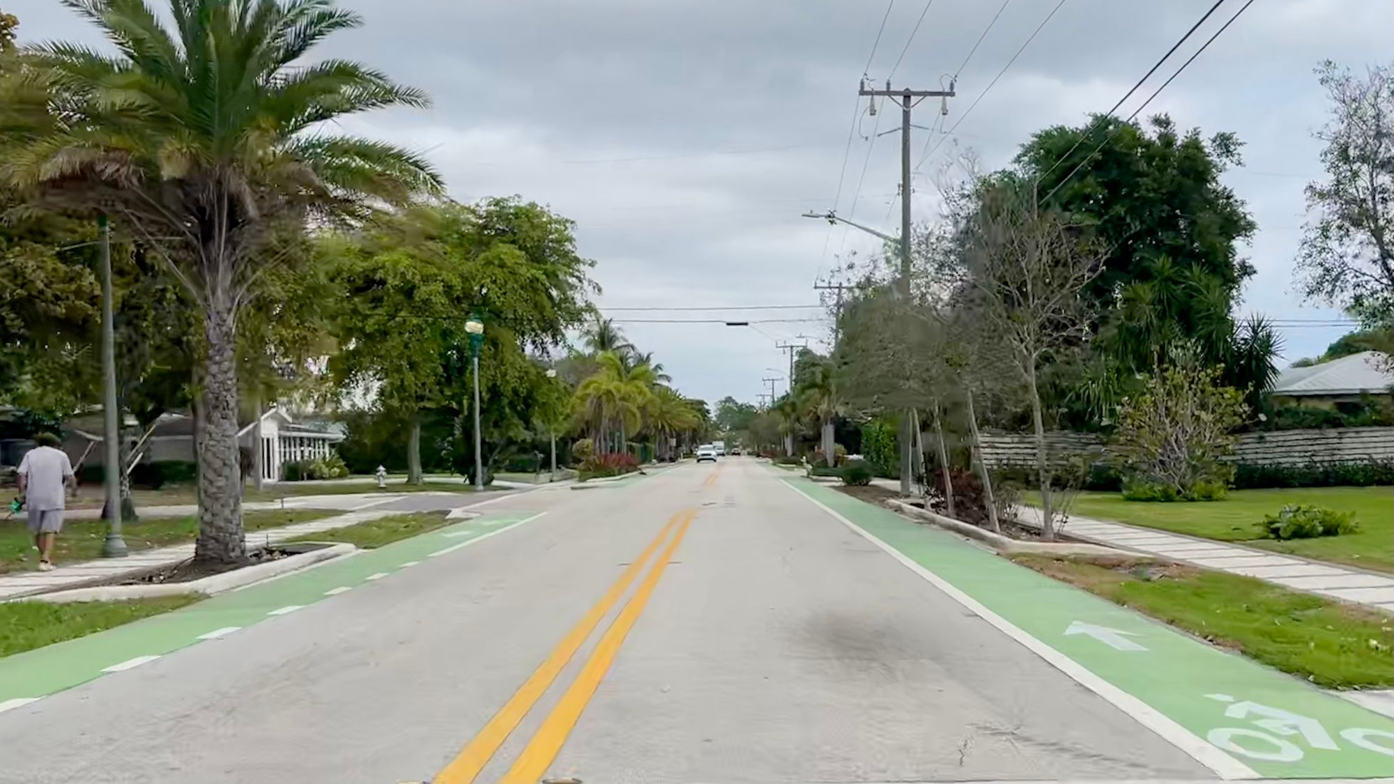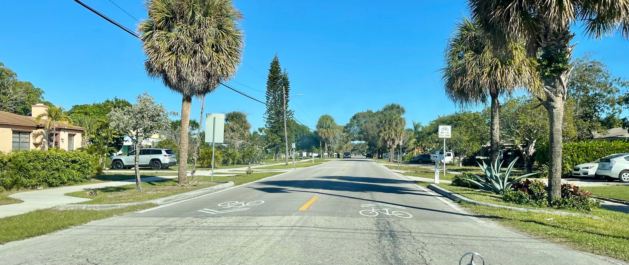 The narrow residential streets in Delray's historic neighborhoods are what we liked most. They were wonderful for walking, biking and playing. Vehicles practically "walked" their car through these neighborhoods. We have biked on most of them and we feel like we are in heaven when we do so. Recently, we were on one such street in a car. It was easy to stop and talk to people when we had a question, almost like when we were riding a bike. It felt like a truly shared space where everyone was welcome.