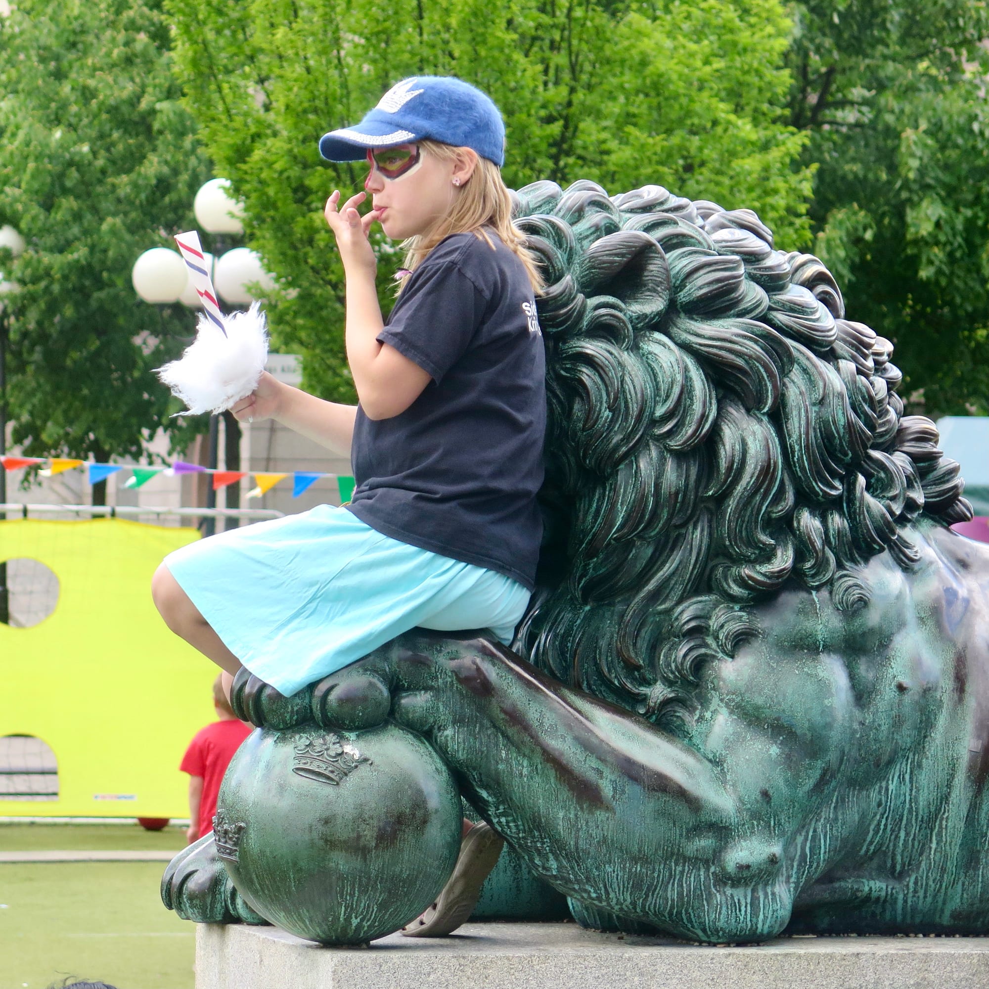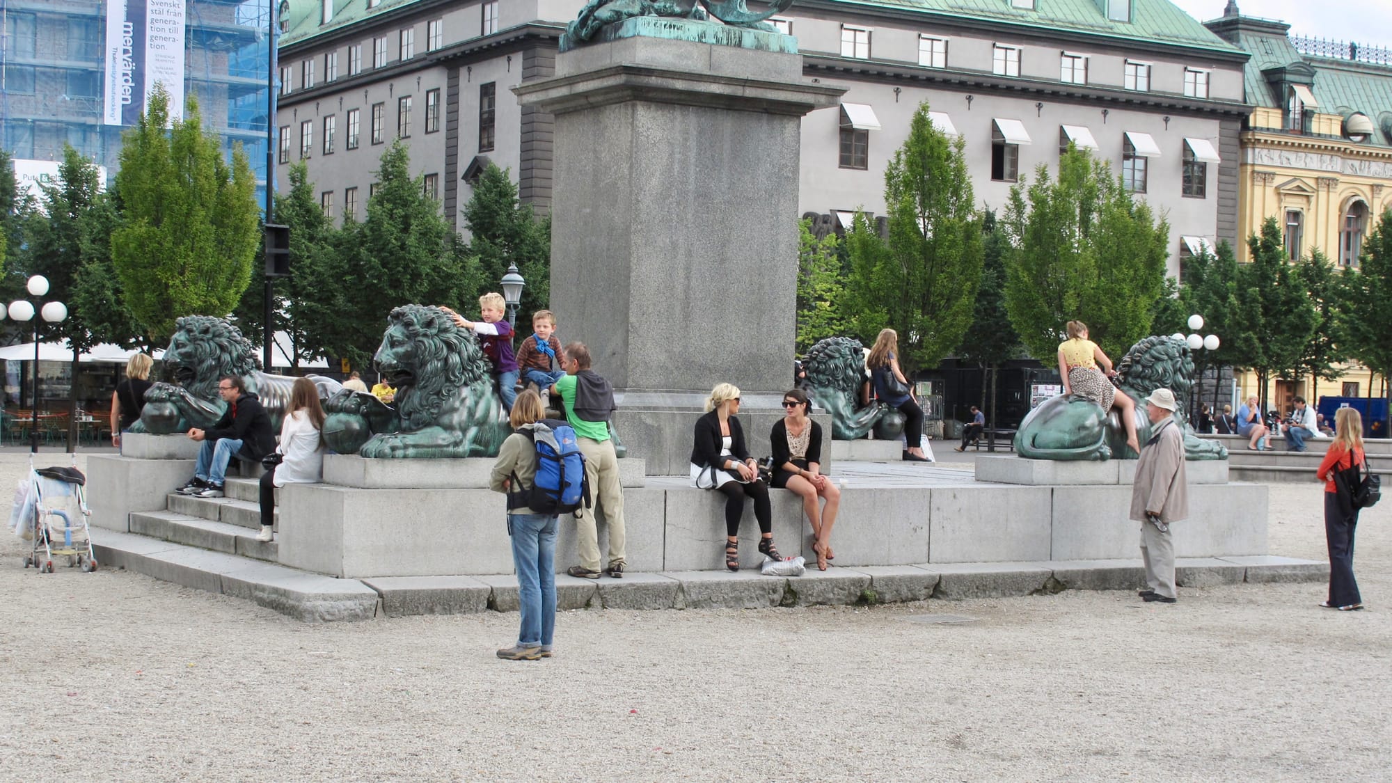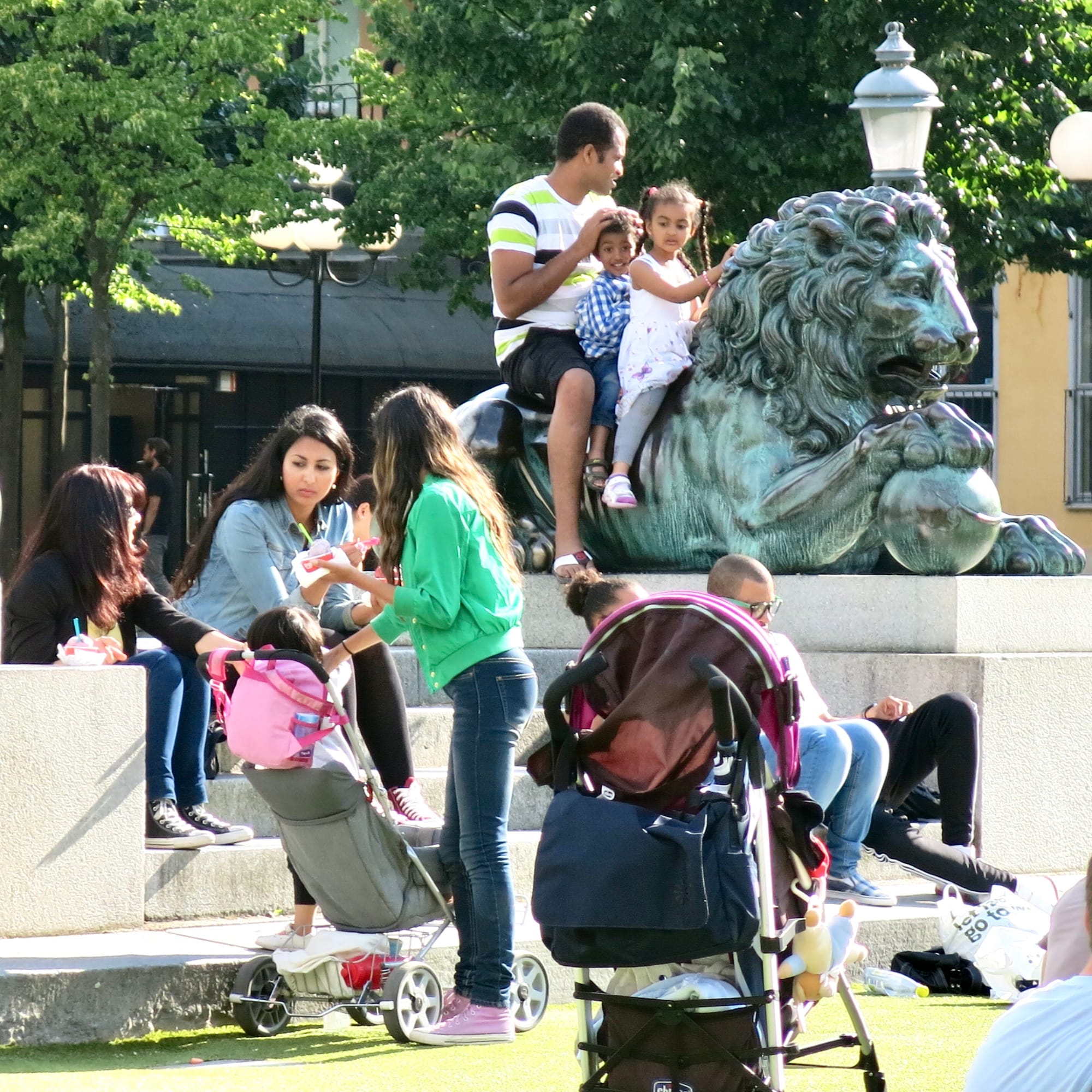 Always a draw, the iconic statues at the center of the lawn are central to the identity of the Kungsträdgården. They invite all sorts of seating, gathering, and play. Climbing onto the lion statues is a particularly strong draw. In a way, they're the "jungle gym" in the playground that is the whole central lawn.