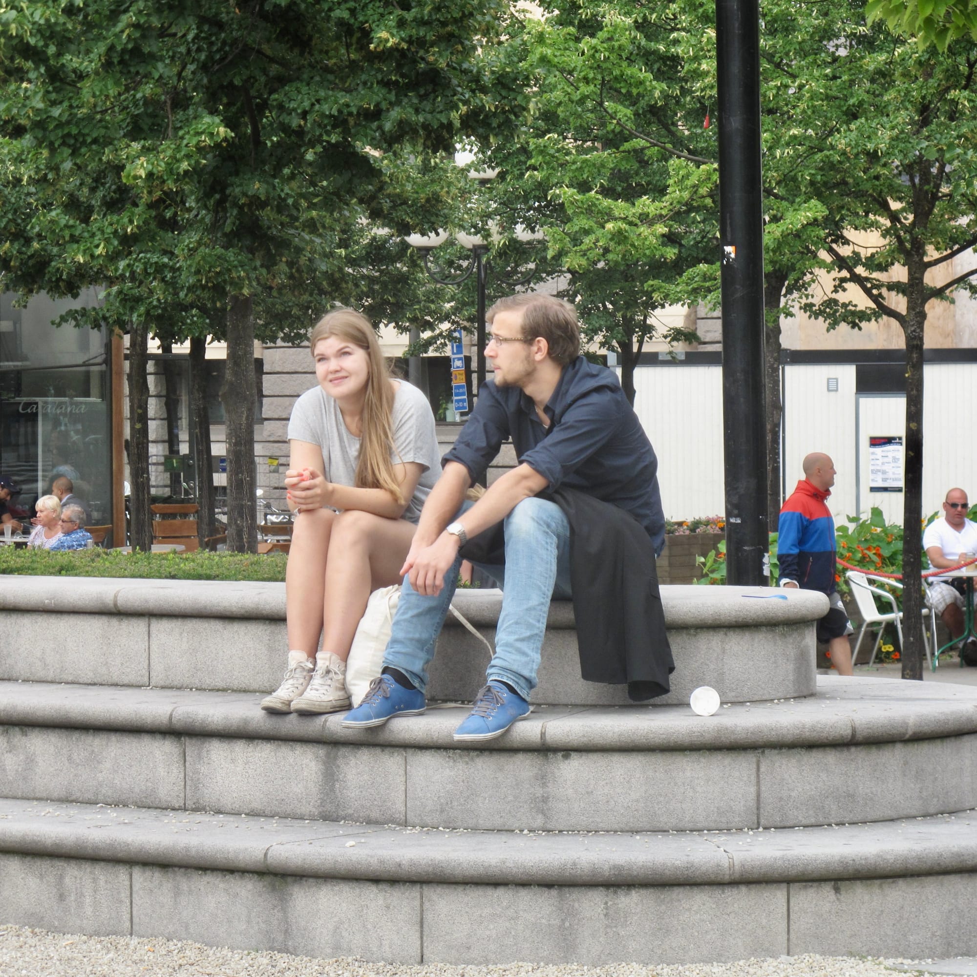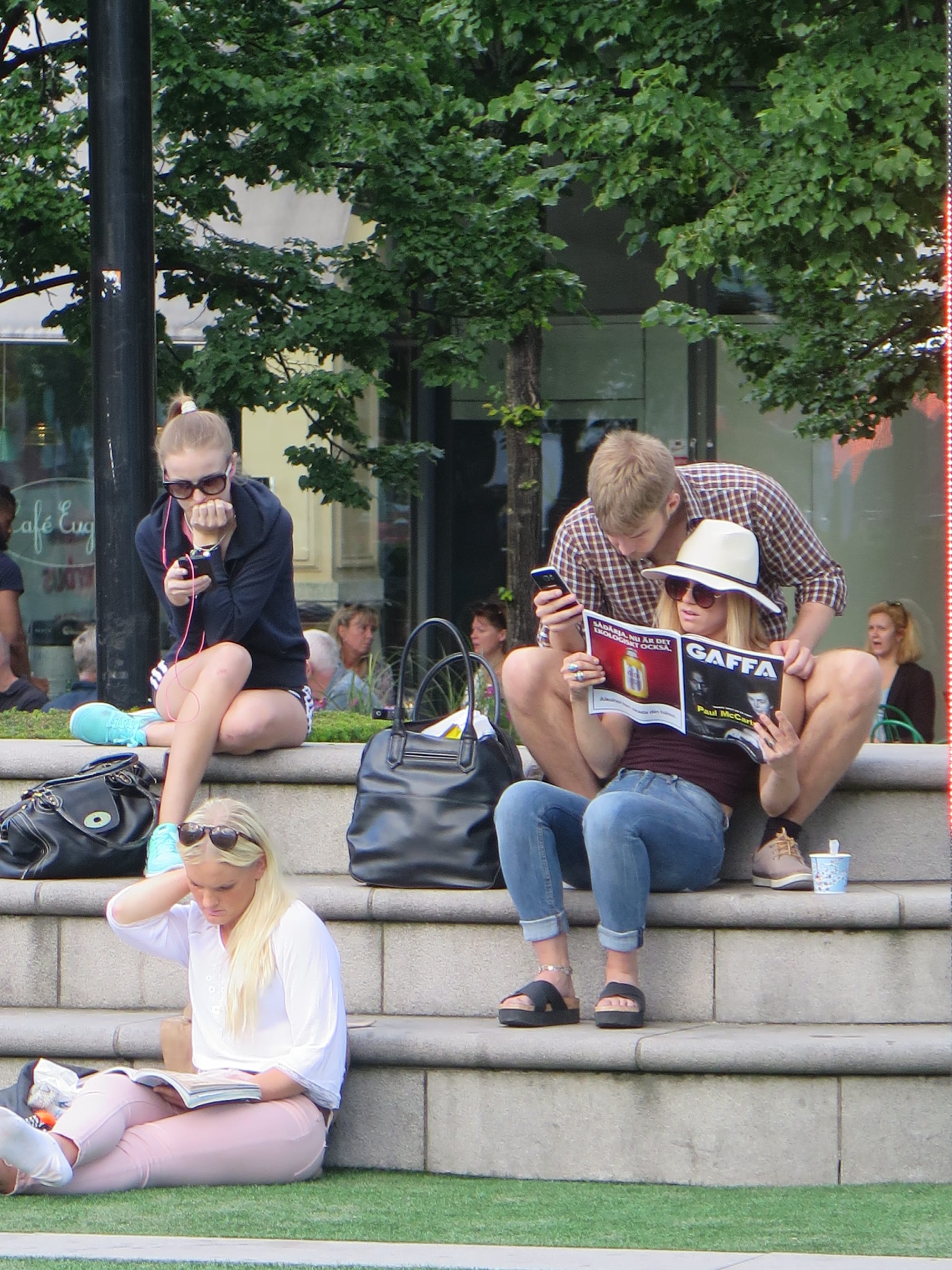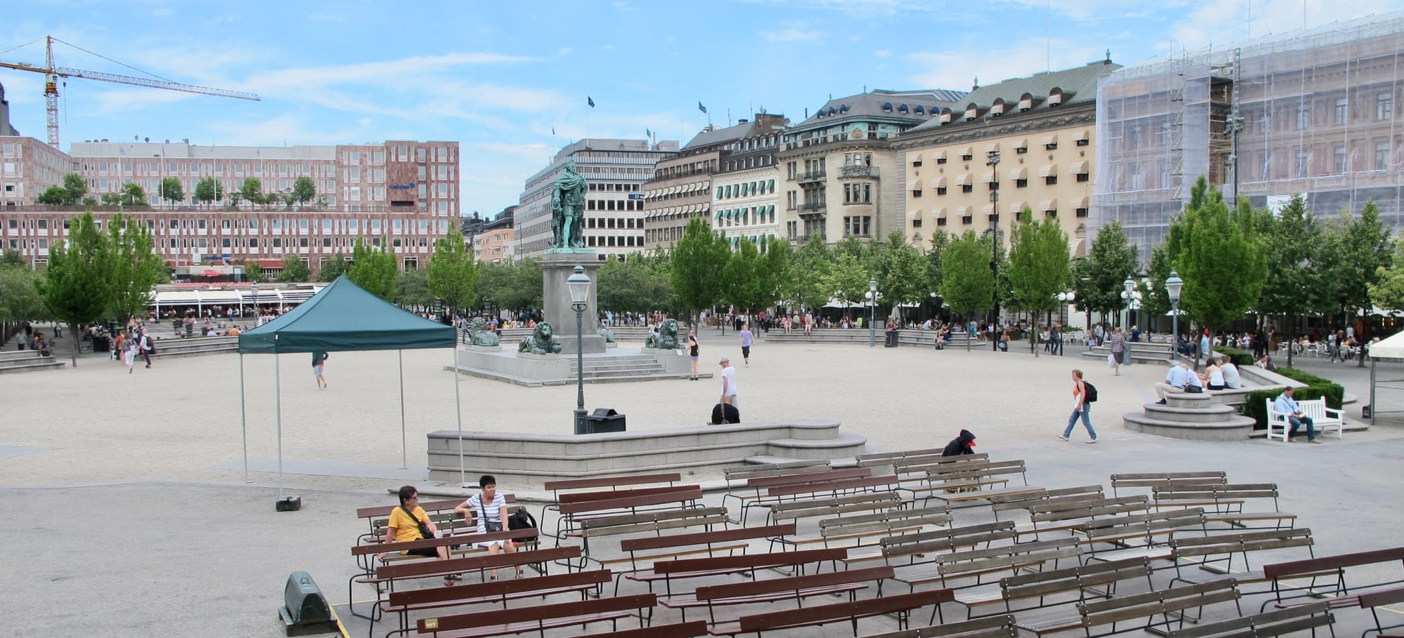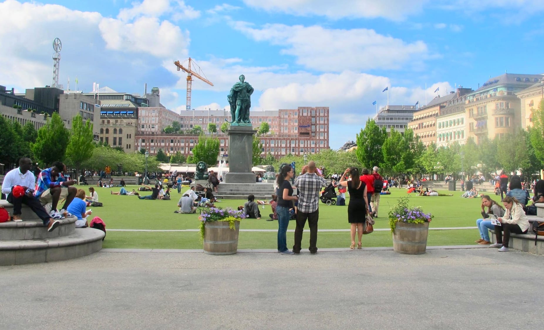Always a draw, the iconic statues at the center of the lawn are central to the identity of the Kungsträdgården. They invite all sorts of seating, gathering, and play. Climbing onto the lion statues is a particularly strong draw. In a way, they're the "jungle gym" in the playground that is the whole central lawn.