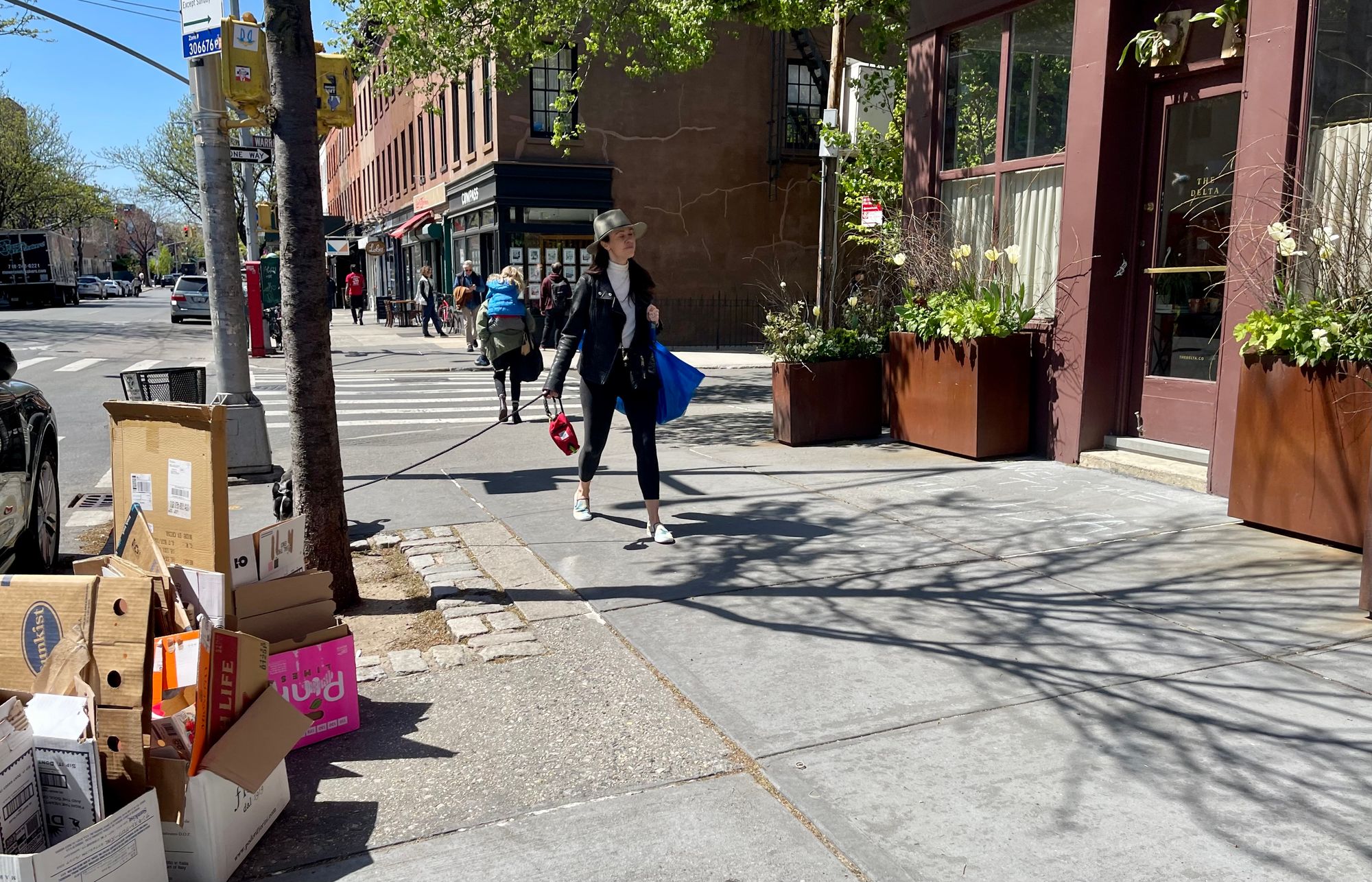 Piles of boxes take the place of a once-lively bench and the social life of this corner is erased.