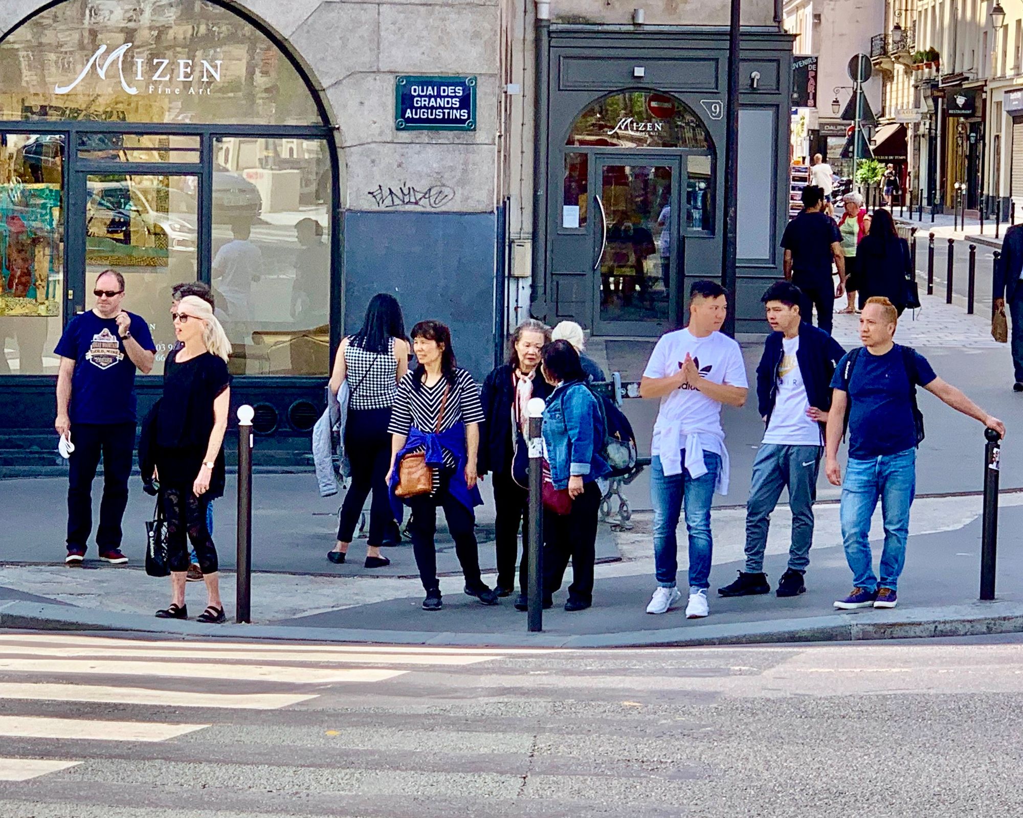 Paris is one of the best cities we know when it comes to creating café corners — but could use some help with public seating at the corners. The only one we could find is the corner below. One exception is located where the historic Pont Neuf Bridge intersects with the Left Bank along the Seine. Few corners have this large amount of space.