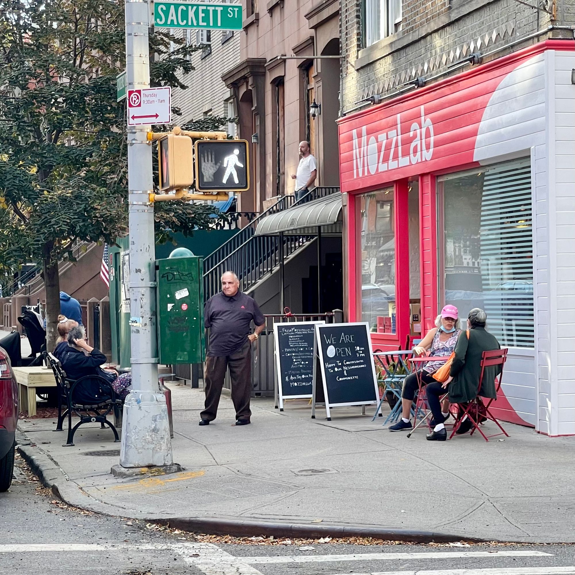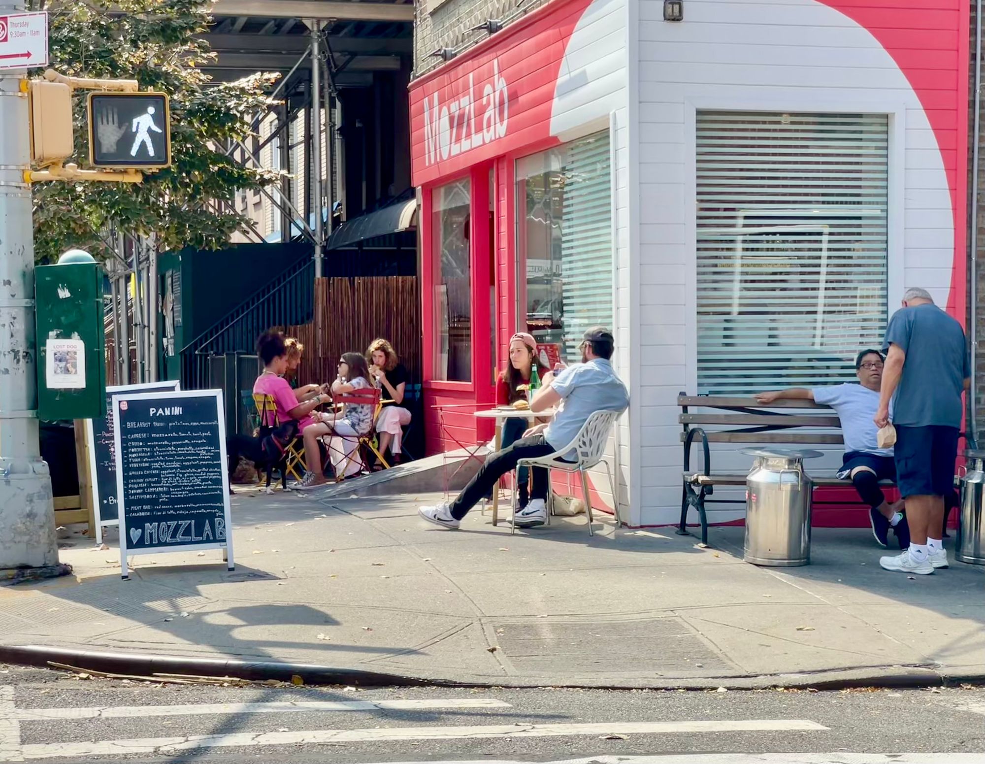 Also, just two blocks from where we live on Henry Street is another exceptional example. This area three blocks is still a center of old Italian life that continues in our community. In fact, those of you who remember the movie, Moonstruck. It was shot in the building where MozzLab is now located. That intersection has public seating on three corners. It is a remarkable setting for people to come together, and it is available 24/7. And you don't have buy anything. There is no table service.