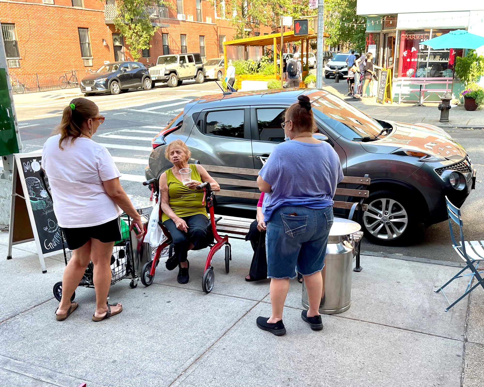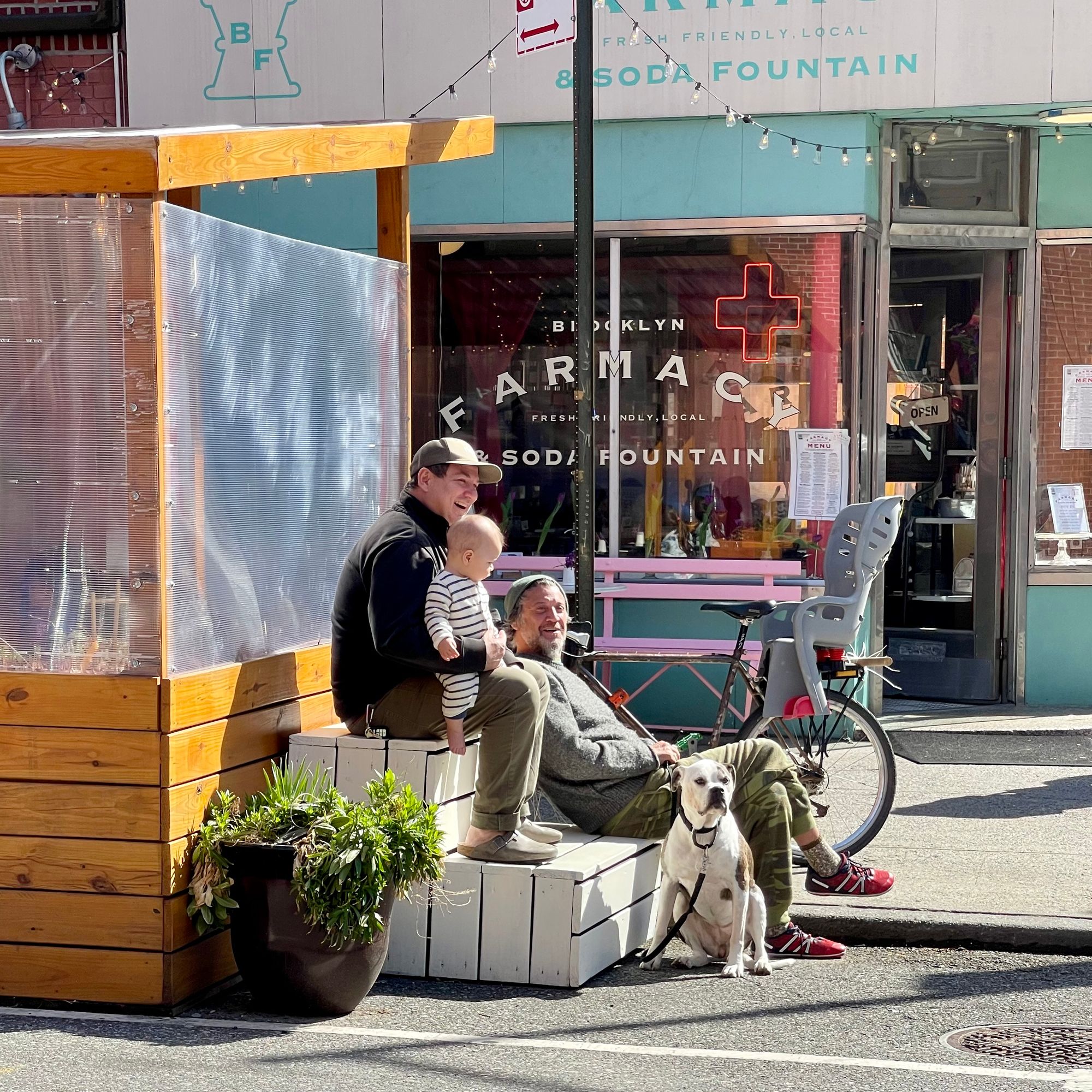 This bench in our Brooklyn neighborhood's main street quickly became a major gathering place when it was first introduced and piqued our curiosity. We were stunned as we witnessed the impact such a simple bench had on a corner we went through at least once a day.