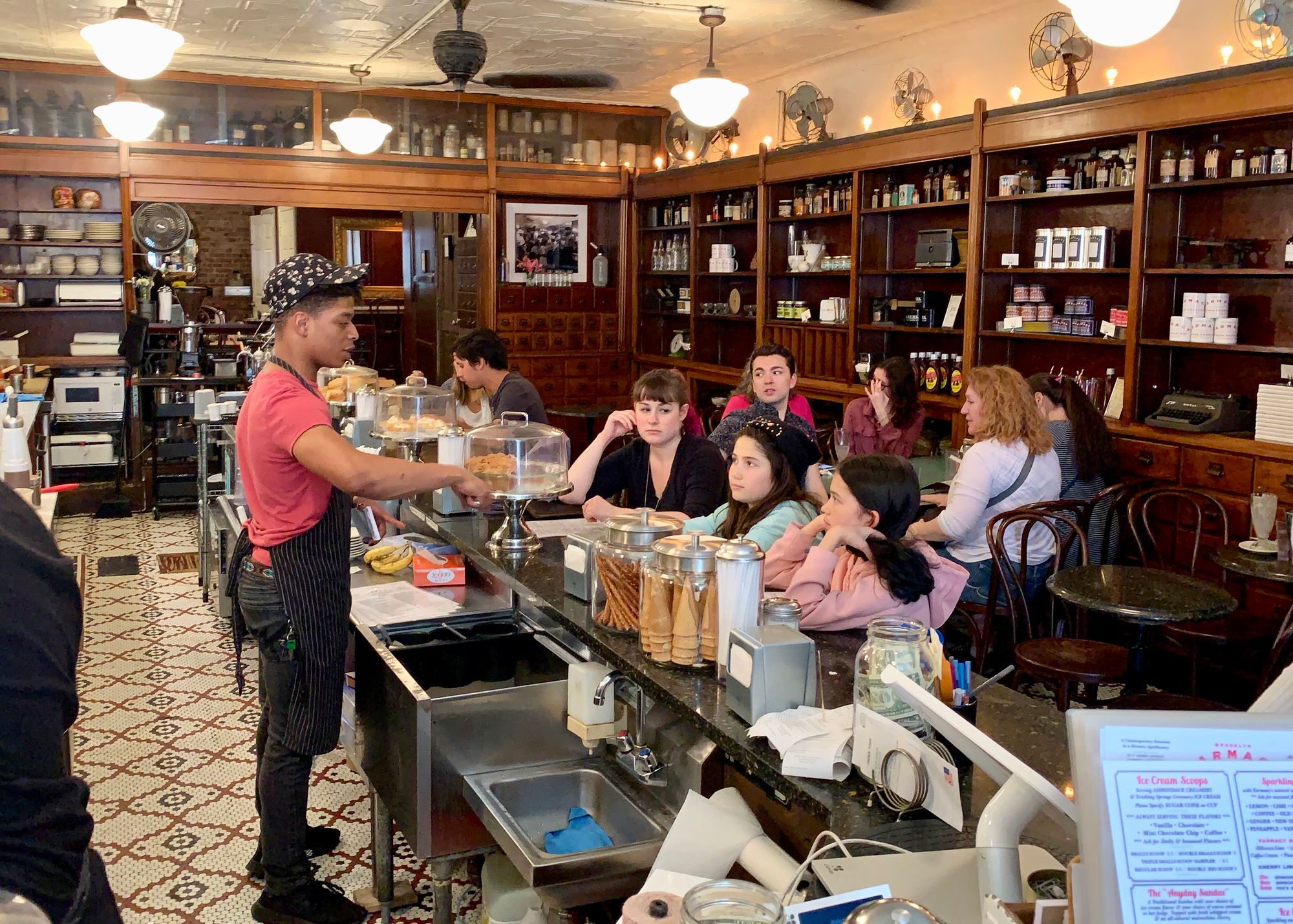 On one corner there is a soda fountain called the Farmacy that draws mostly children and a young crowd.