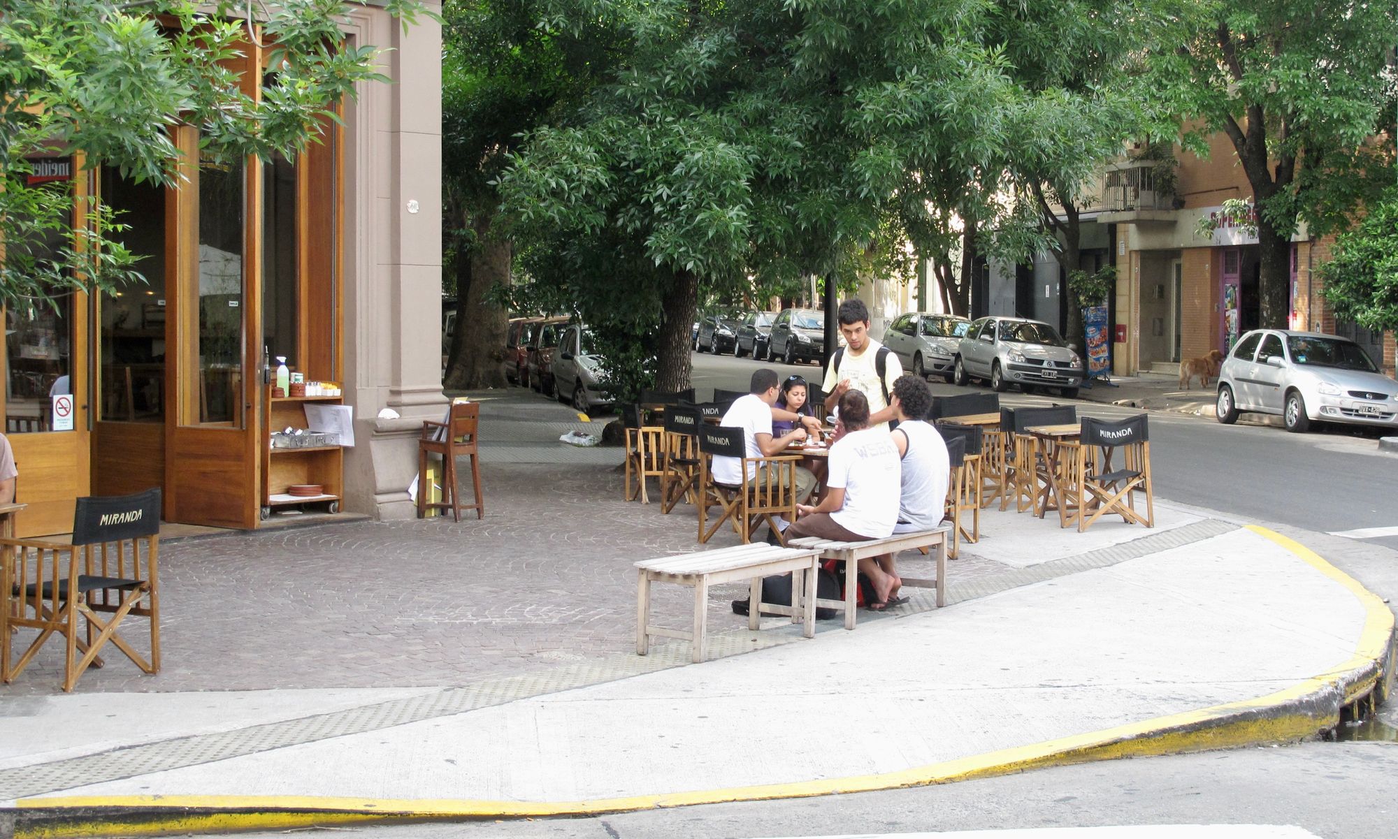 Buenos Aires also has a few corners with public seating, but many more have canted corners where there's much more space for gathering. In those, the exposure for individual stores/restaurants at the corners is significantly enhanced.