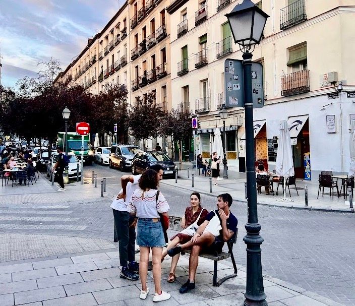 These examples of public seating on the corner and cafe seating on both sides is unusual but certainly welcoming
