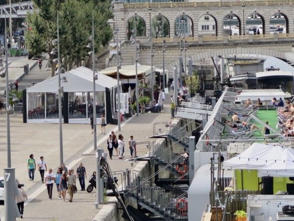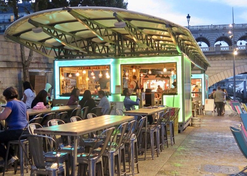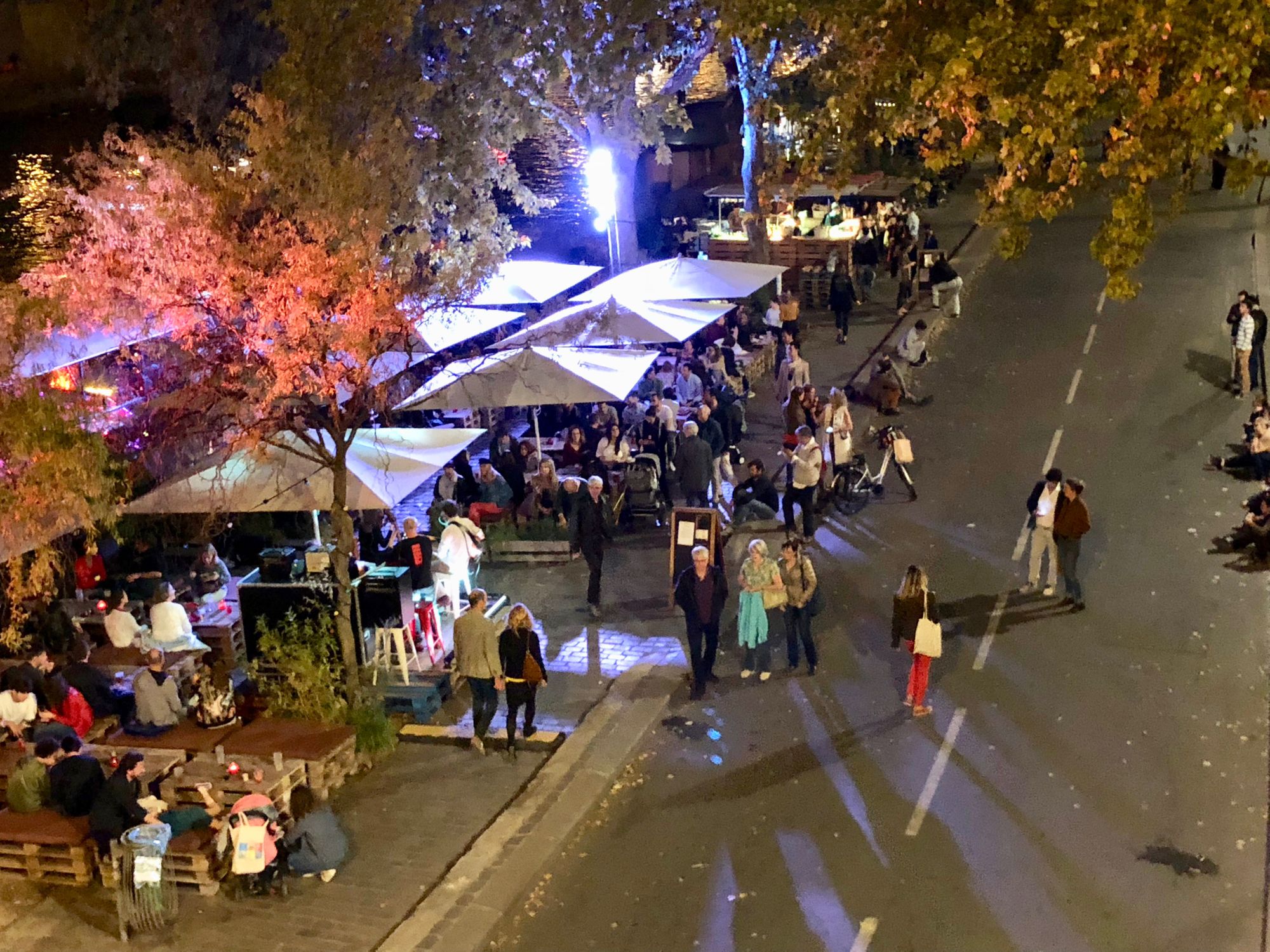 Upriver from Notre Dame Cathedral, the riverfront has been animated by seasonal restaurants and bars that remain hopping into the early hours of the morning. These cafe structures are relatively simple to construct and afford ample opportunity for people to stop and organically engage in the social scene. This kind of ingenuity wouldn't be hard to copy along False Creek in Vancouver.