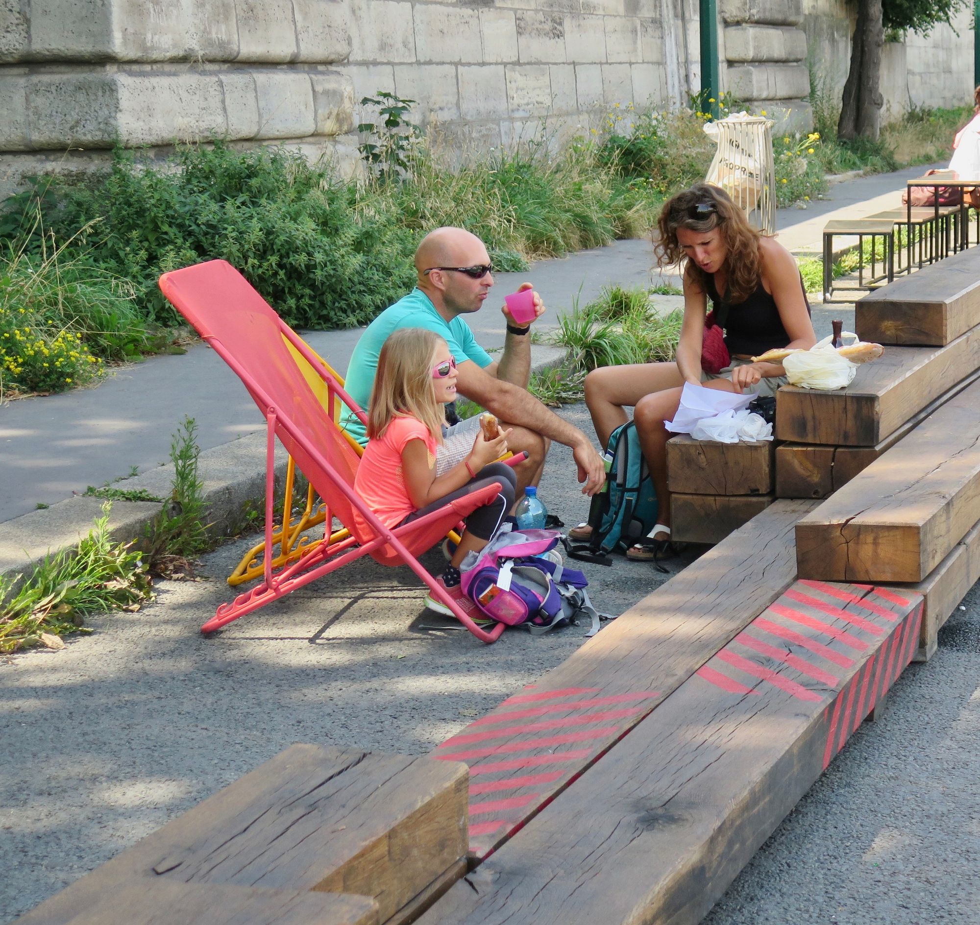 Put a good bench in a public space, and people will find unique ways to sit, lay, nap, sunbathe, and chat on it. The benches along the Paris waterfront are not only well-placed, but also feature interesting designs which encourage creative uses and accommodate many people.
