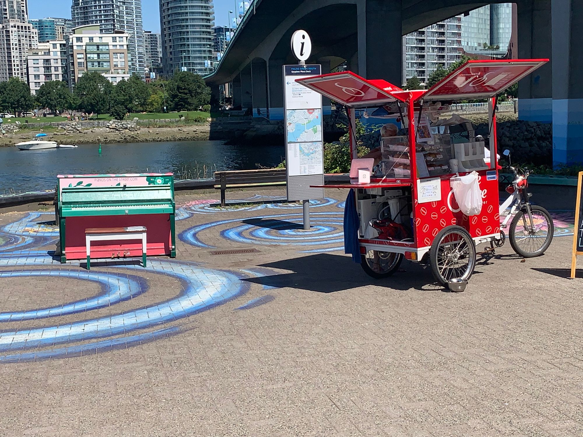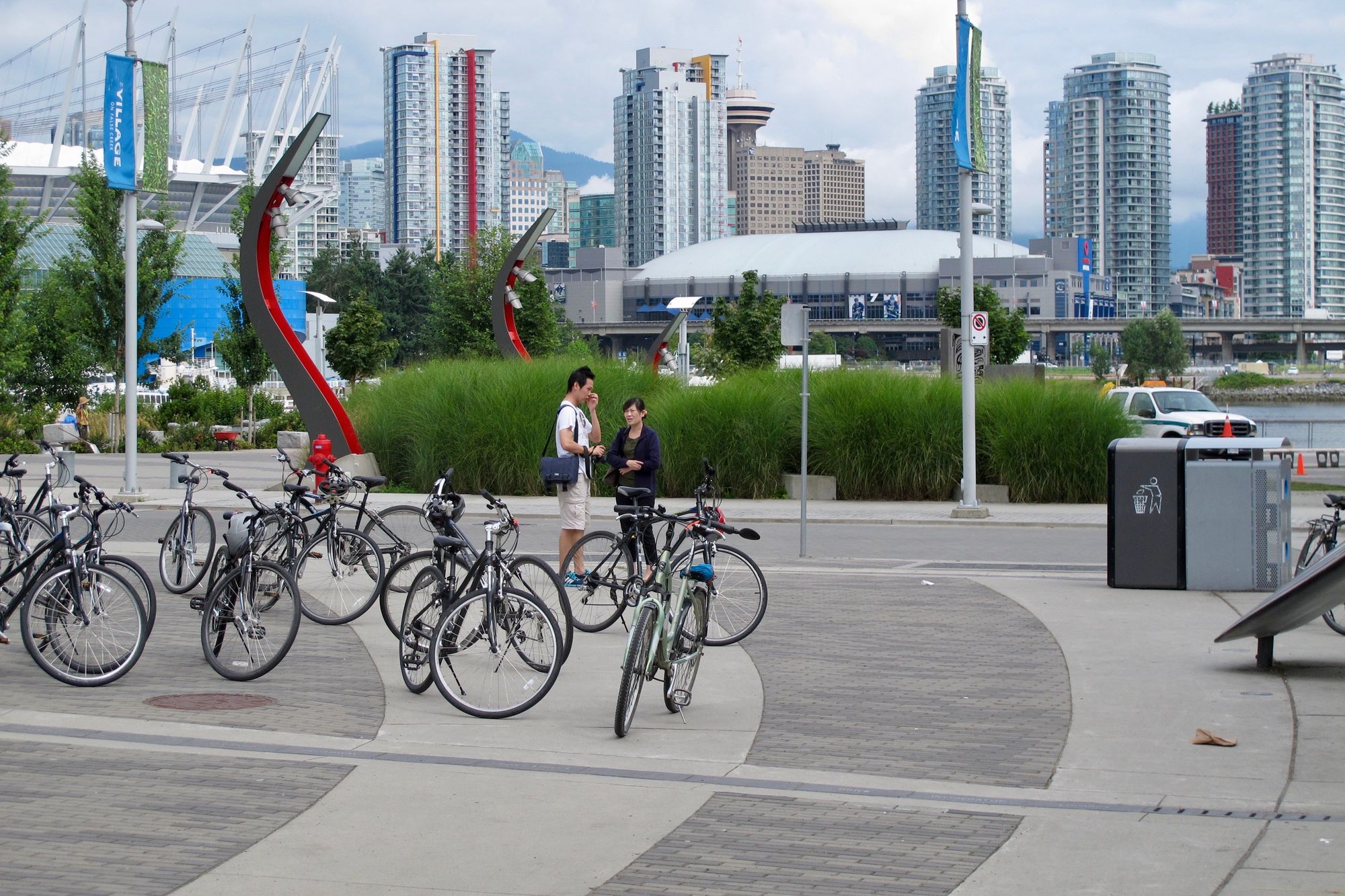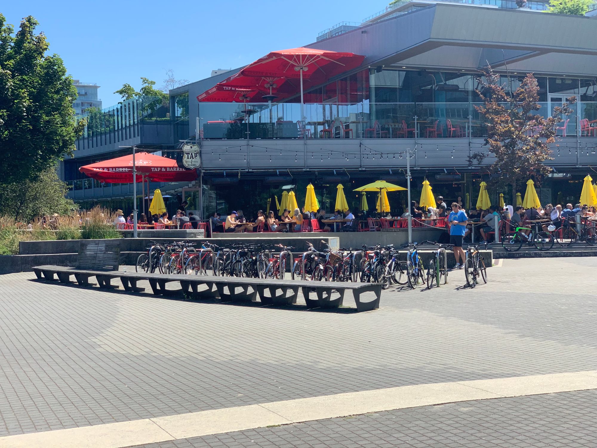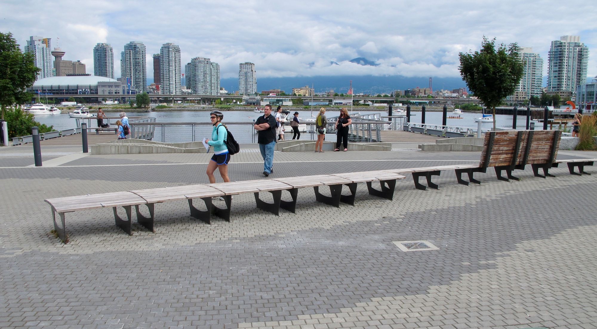 One of the few places to pause along the bike-heavy south side of False Creek.