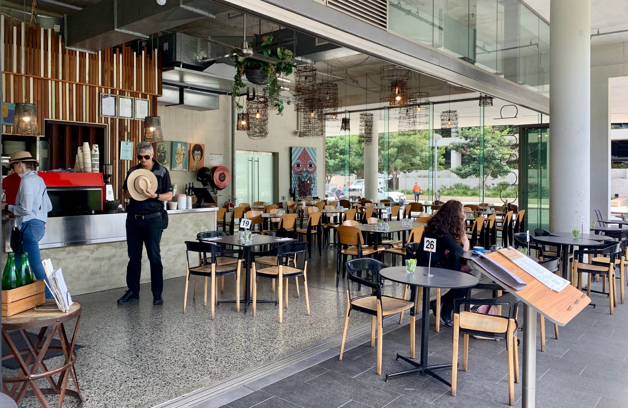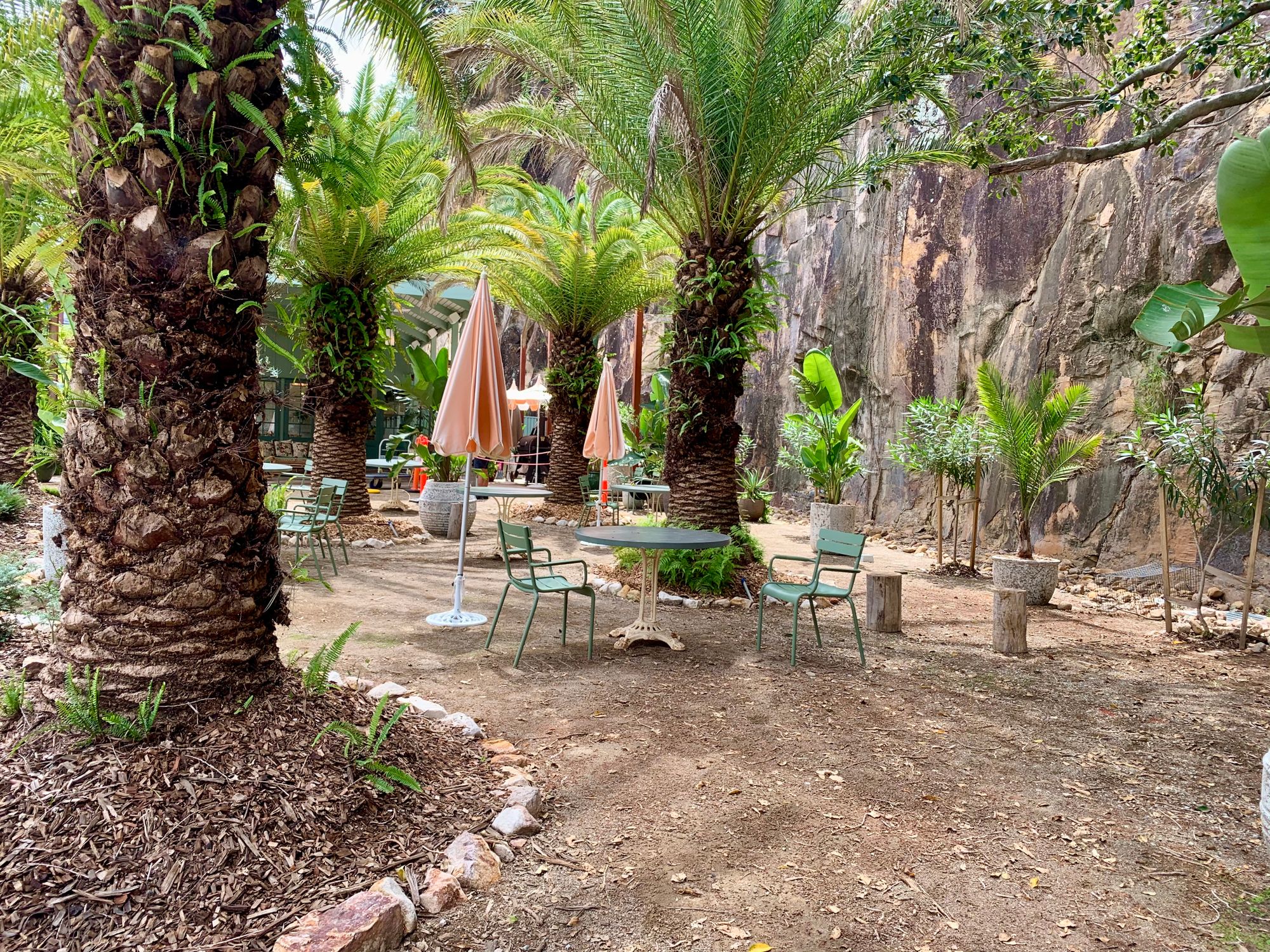 Brisbane's South Bank and Greenhouse Event Space, part of the Howard Smith Wharves, all lie along the Brisbane River. These spaces demonstrate myriad ways to provide shade, featuring promenades with well-cared-for trees, suspended planters, and sheltered indoor-outdoor areas with seating. Some areas are also unpaved, which can reduce the temperature of an area that might otherwise feature hot asphalt surfaces.
