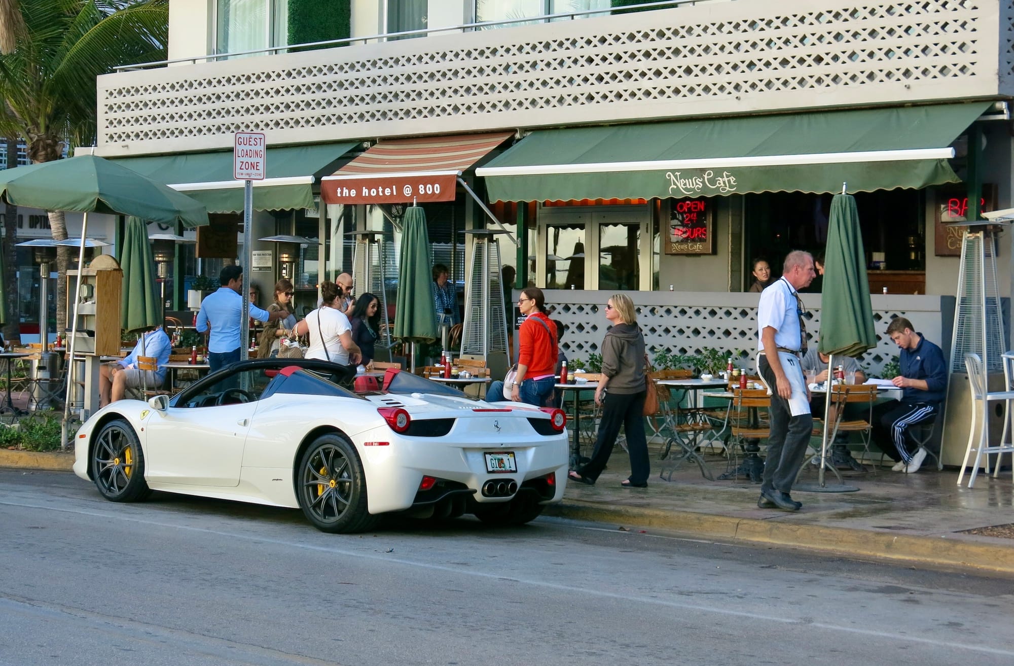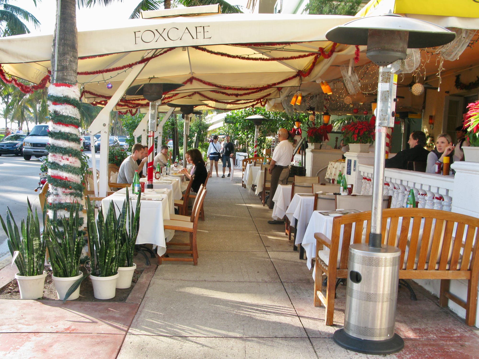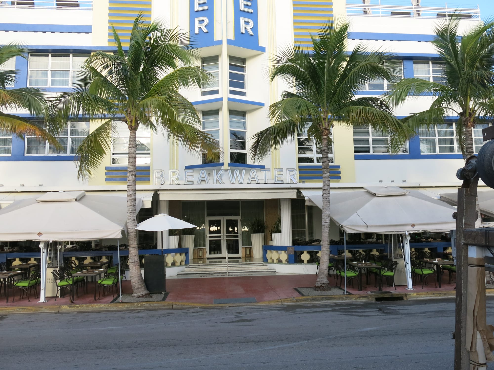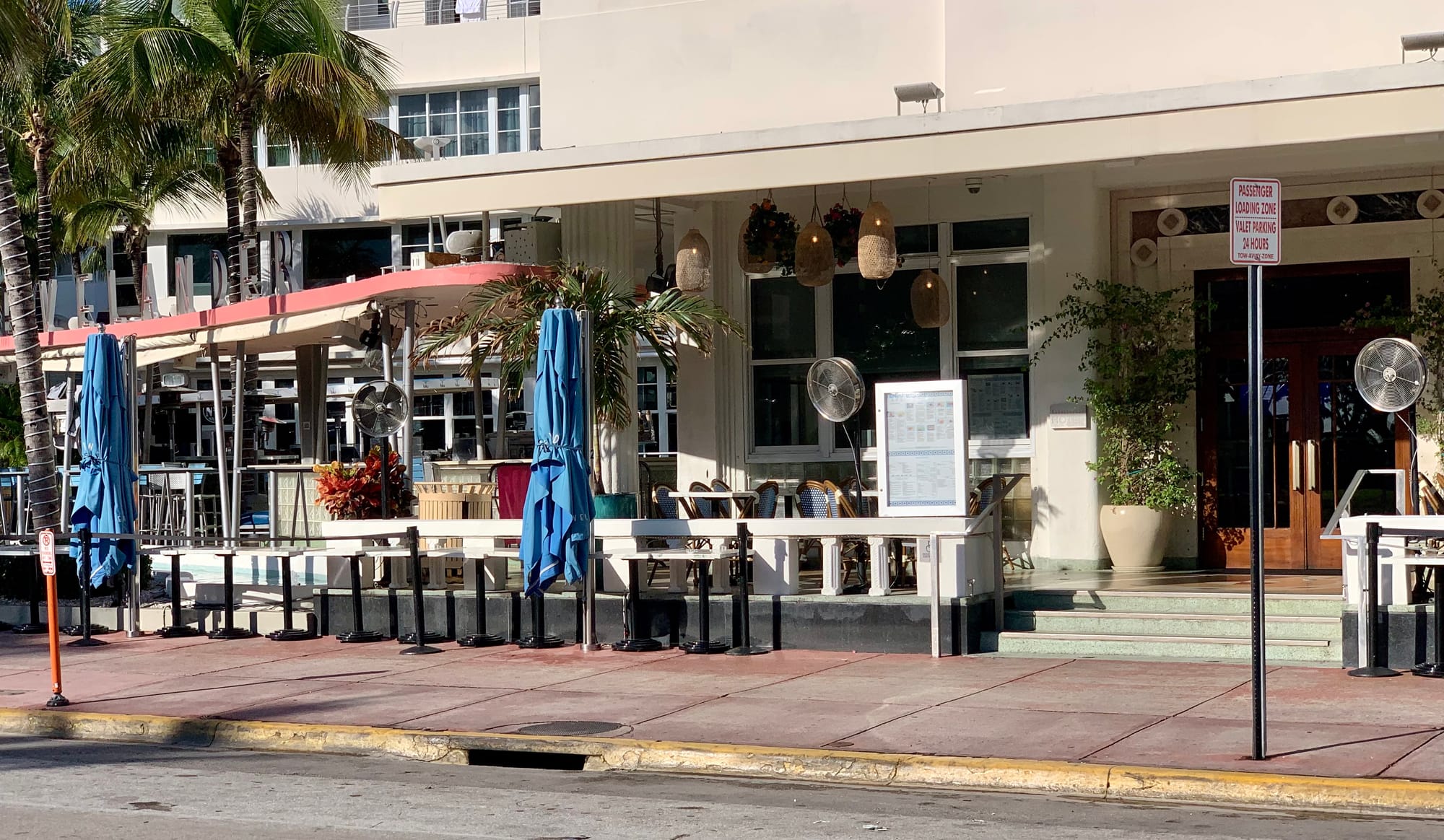 With Art Deco buildings lining Ocean Drive on one side and a park and beach on the other, Ocean Drive in Miami Beach is a place to see and be seen as traffic creeps along the busy thoroughfare. Most of the Art Deco hotels that face Ocean Drive have porches to view the passing visitors.