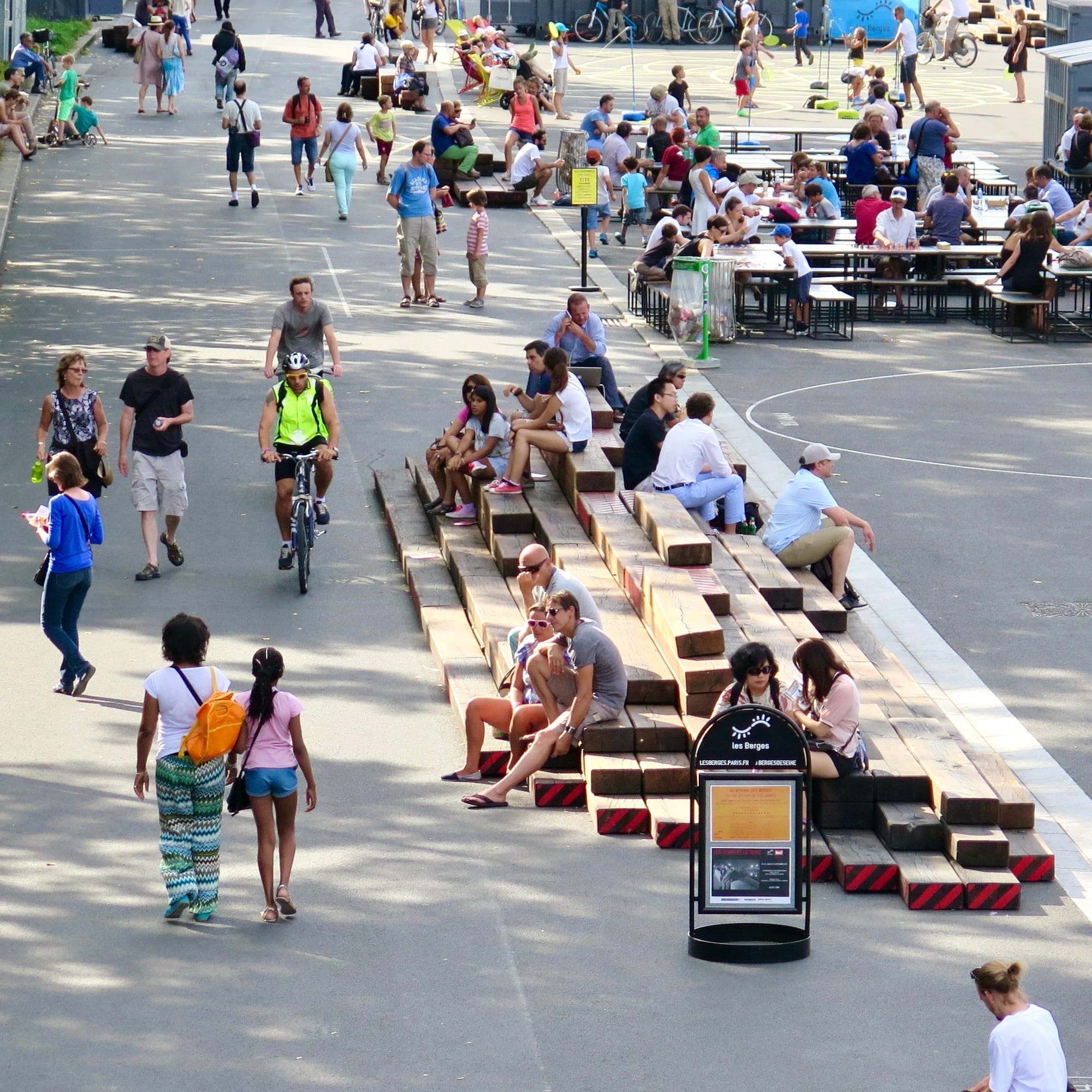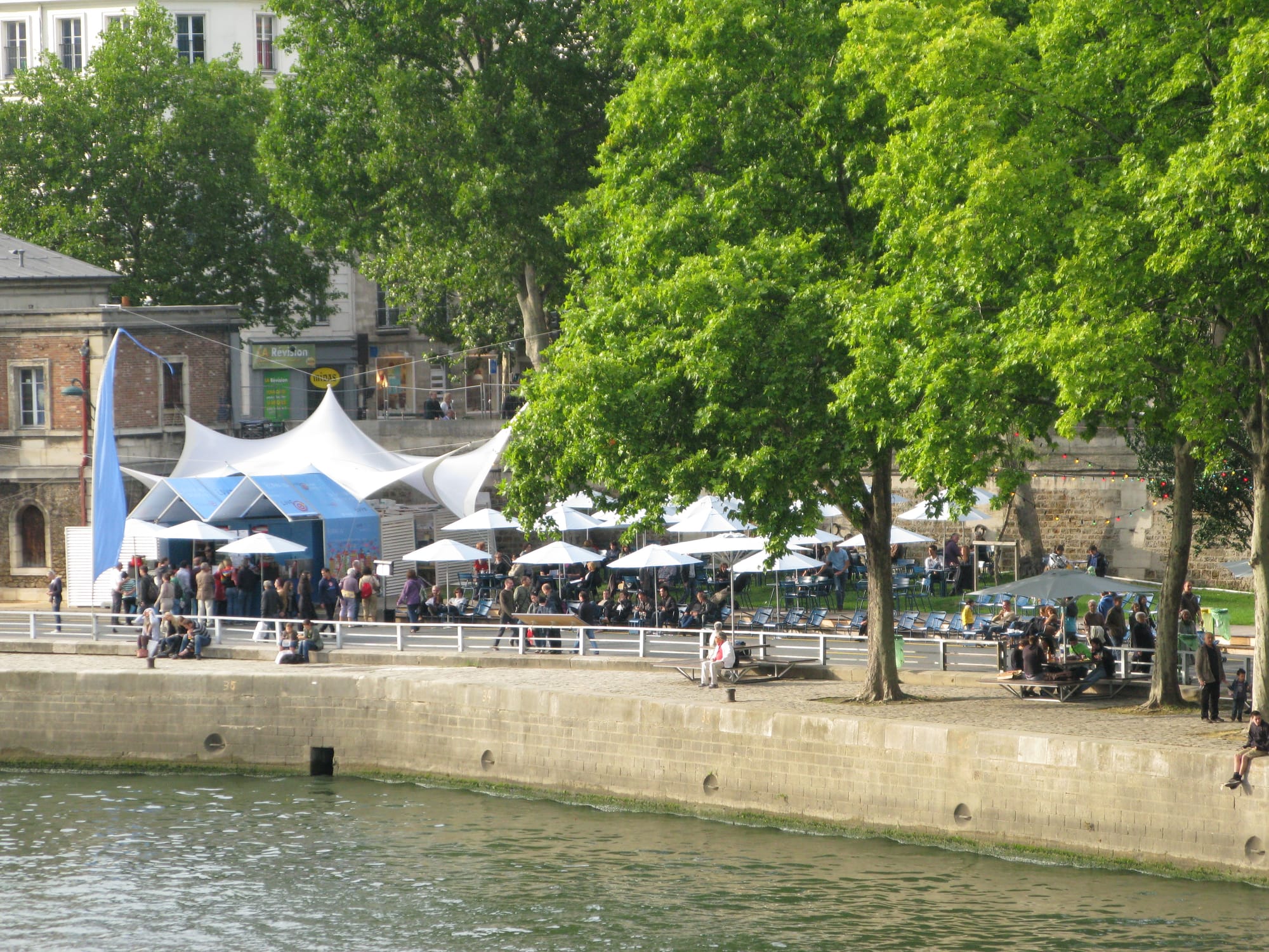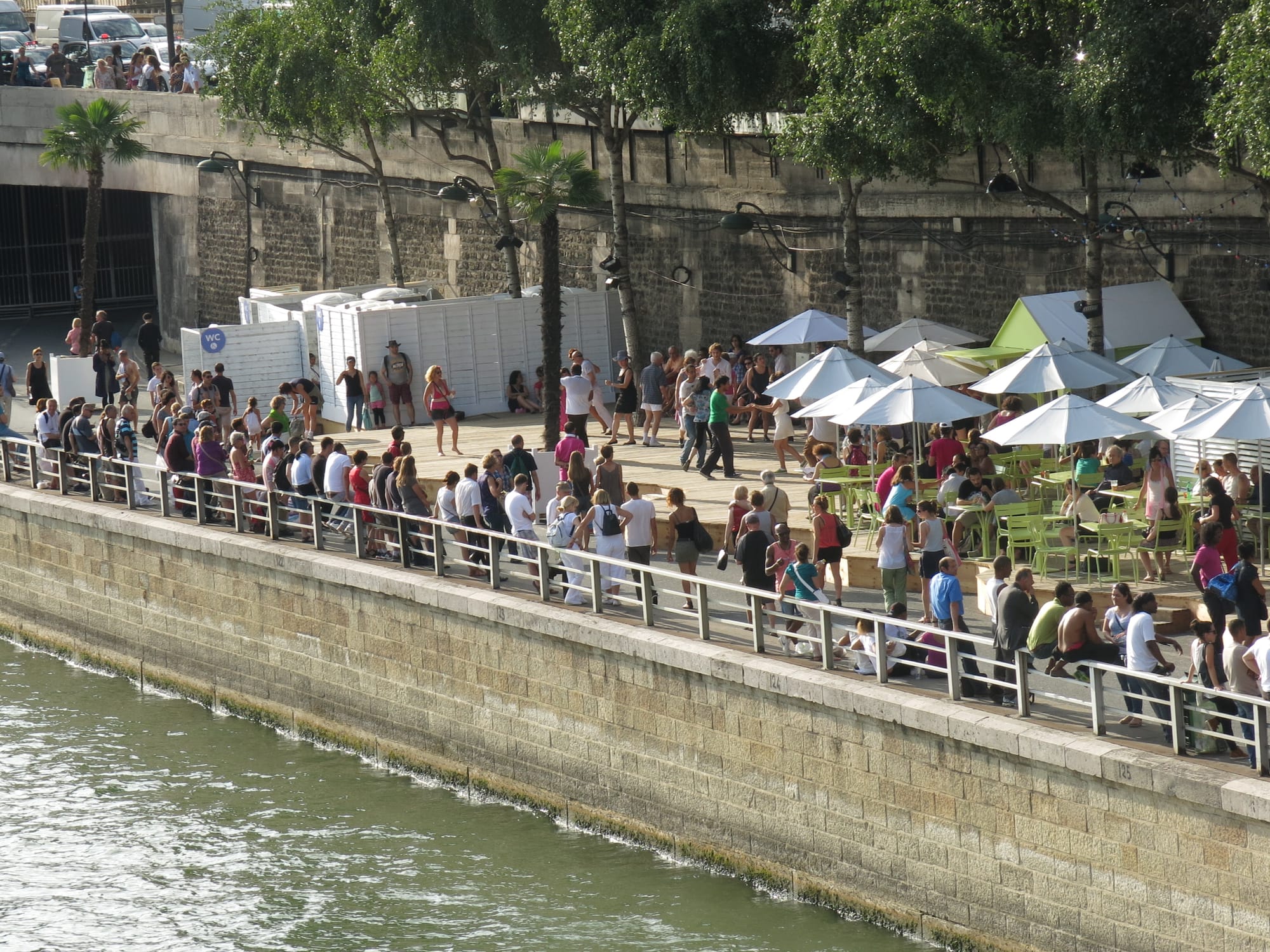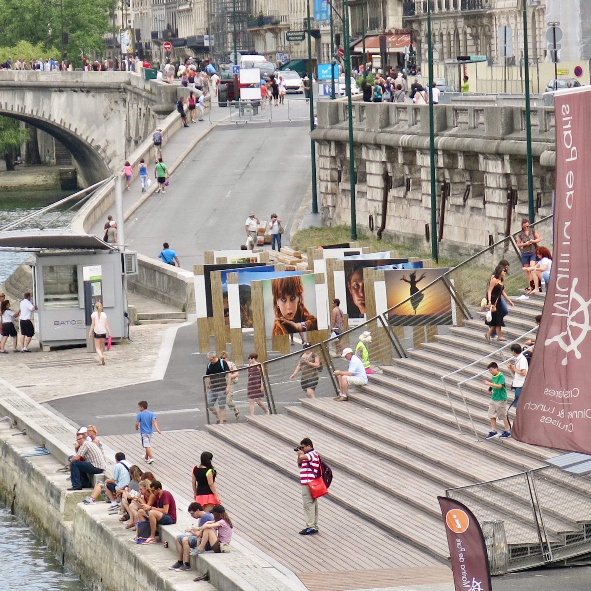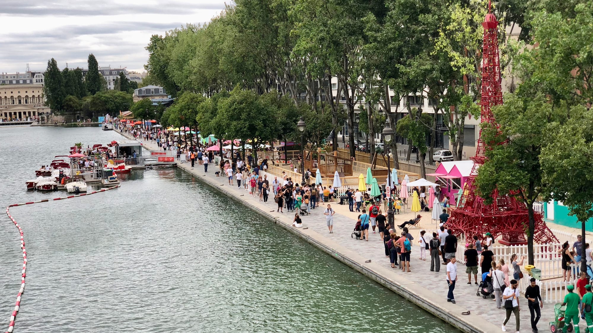 The Paris waterfront feels like a series of unique people-friendly destinations with no residential or high rise buildings to overwhelm the area with impersonal concrete, glass and shadow. It feels like a set of vibrant rooms rather than a barren corridor like Hong Kong's disconnected walkway.