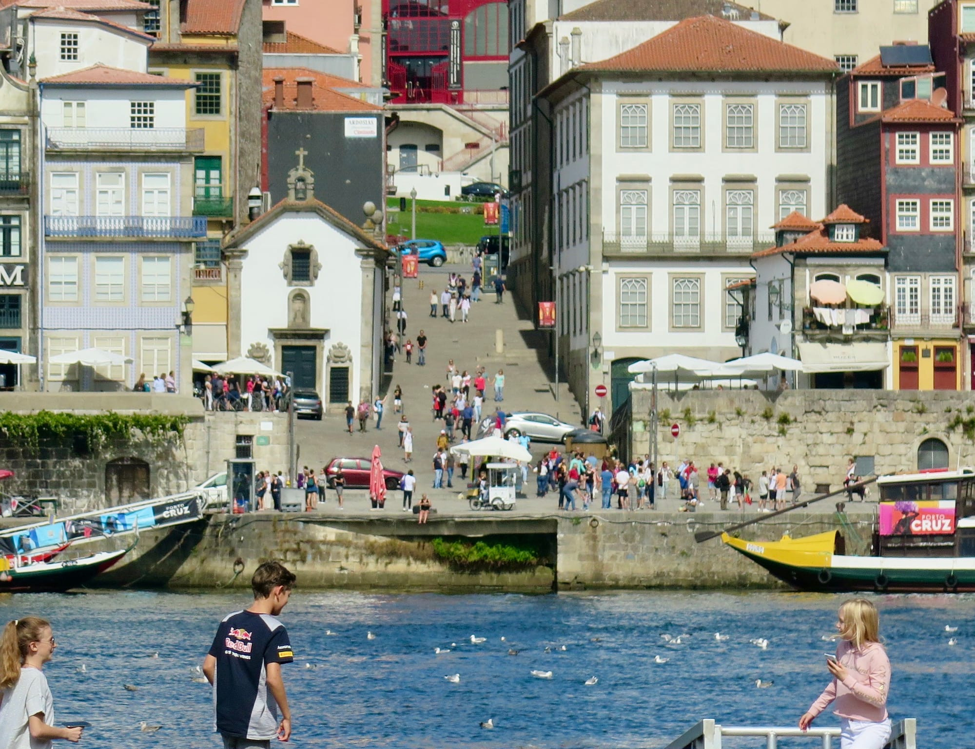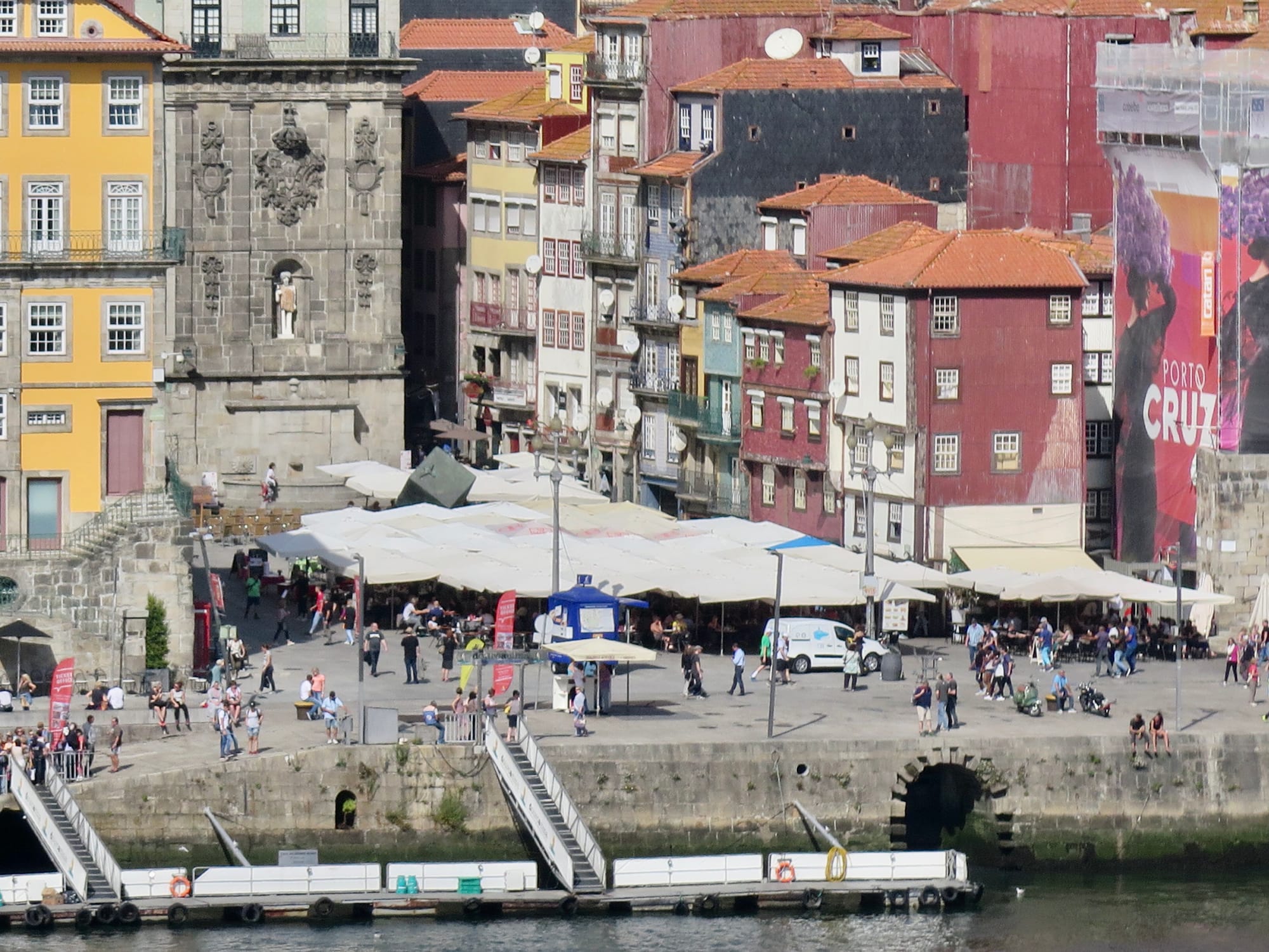 Porto has a magnificent waterfront that cascades down to the water, affording views from multiple levels. It also has multiple levels for public use along the main promenade. Access is through corridors that create active destinations along the water. It is certainly one of the best waterfronts we've seen. It is the antithesis of what we have been given for the Brooklyn Waterfront plan.