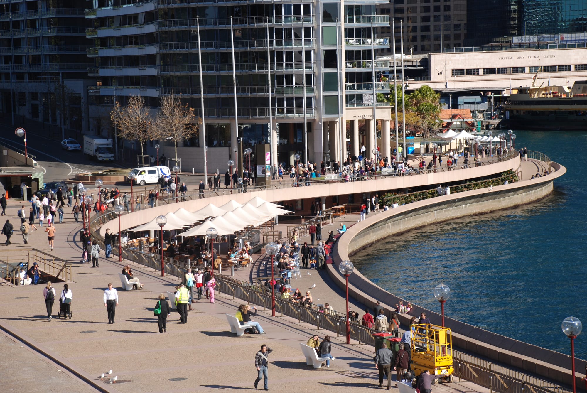 Because high-rises dominate the space, the waterfront promenade had to be build out on the water, disconnected from the city.
