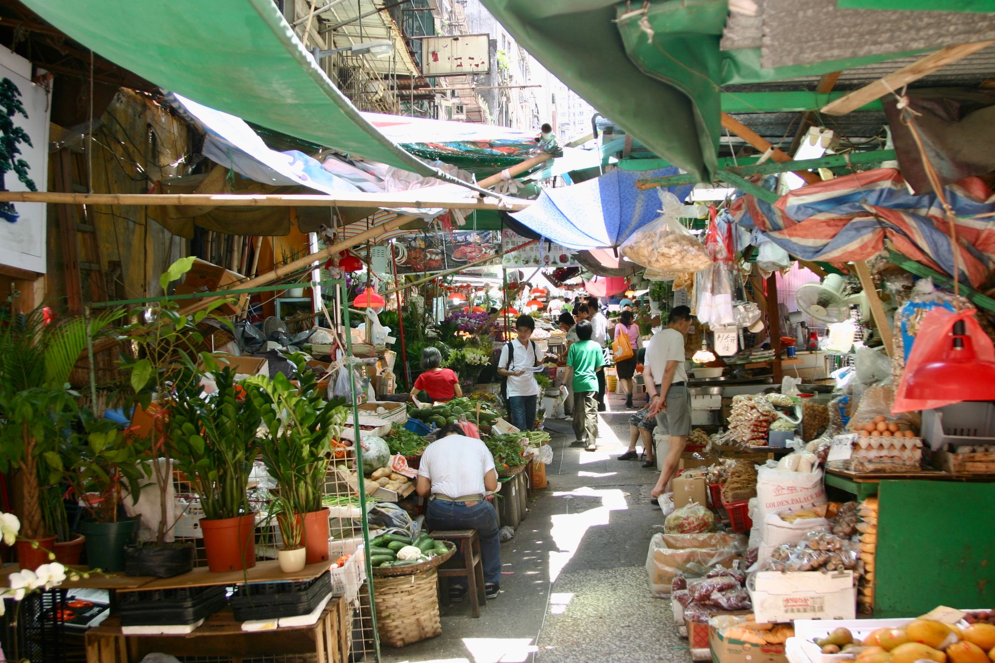 Street markets are a classic example of pulling goods outside. Their popularity powerfully demonstrates the success of doing so. Open air markets like the one below in Hong Kong are always bustling with social activity and sales.