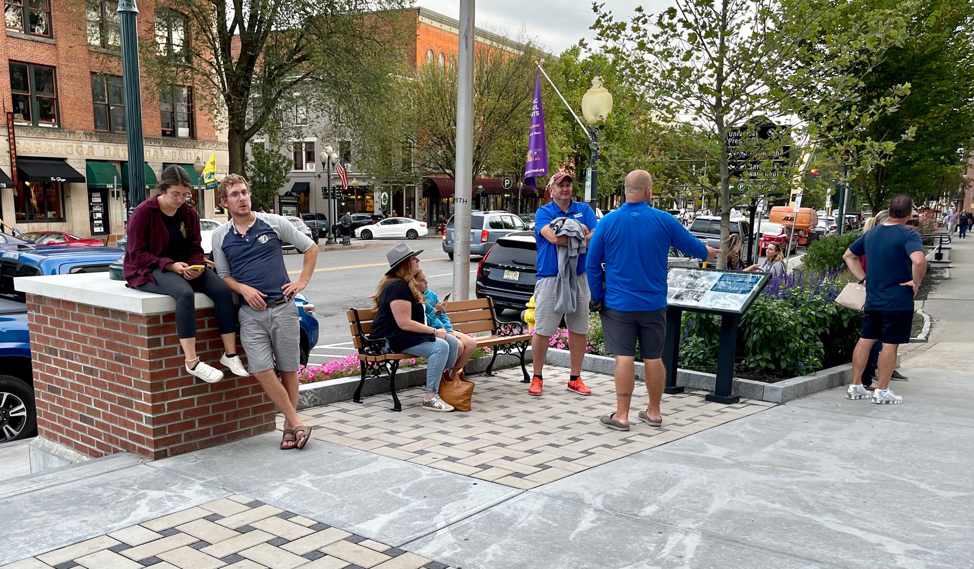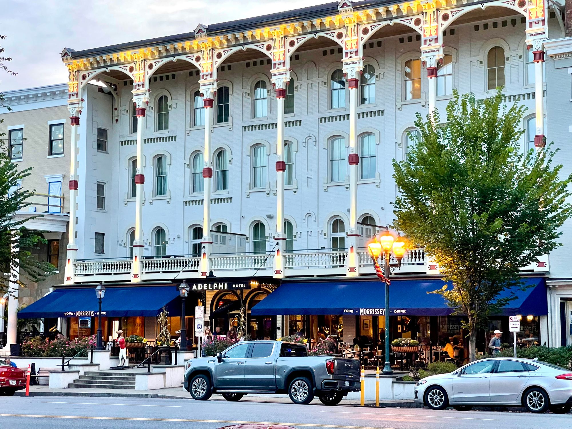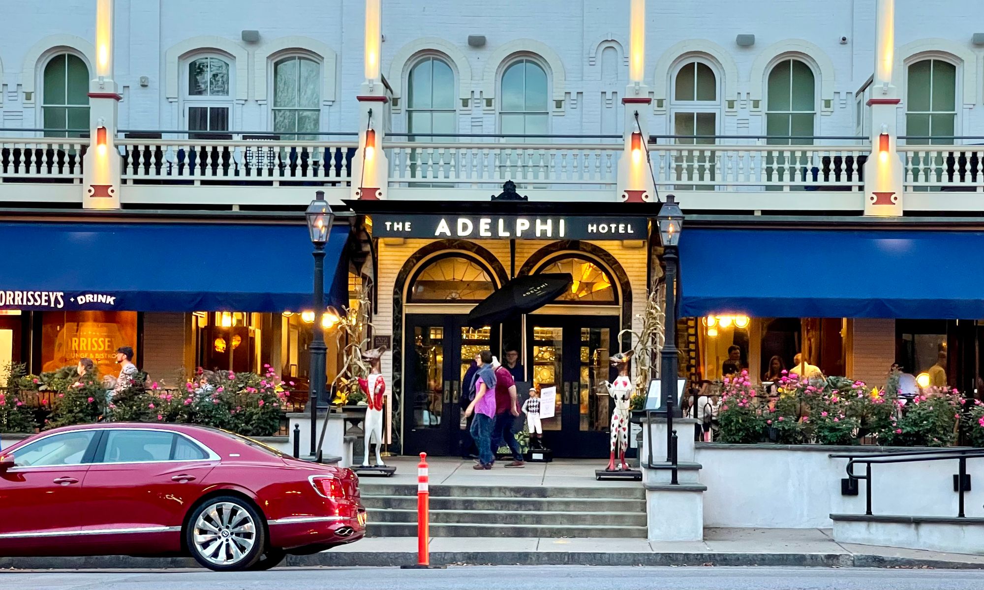 In Saratoga Springs, the Adelphi Hotel has created an active sidewalk plaza, which has turned it into a local destination. Bringing the dining out onto the sidewalk makes the entry area that much more inviting as a place to linger.