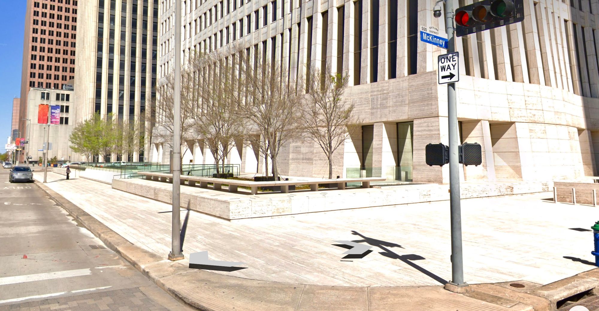 For example, in Houston, one of the worst building is the Shell Oil Building. There is no place to sit or any shade to help people escape the hot Texas sun. This plaza, designed by SOM architects, was clearly not meant to be used by people in any way. Everything about it commands us to "look but don't touch." There is no welcoming spot to sit down on and even the steps are uncomfortable to walk on. We think the designers and managers purposefully meant to keep the public away from this important corporate center in the heart of the city. It definitely looks and feels that way.