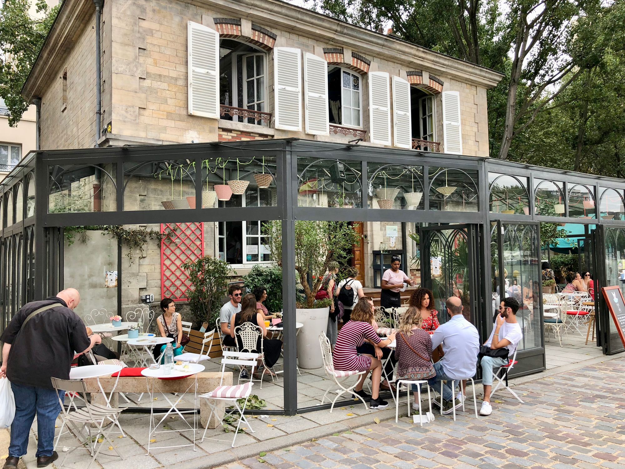 These closed pavilions maintain the air of privacy people may want while dining, but still bring the inside out into the public eye because of their glass walls and notable sidewalk presence.