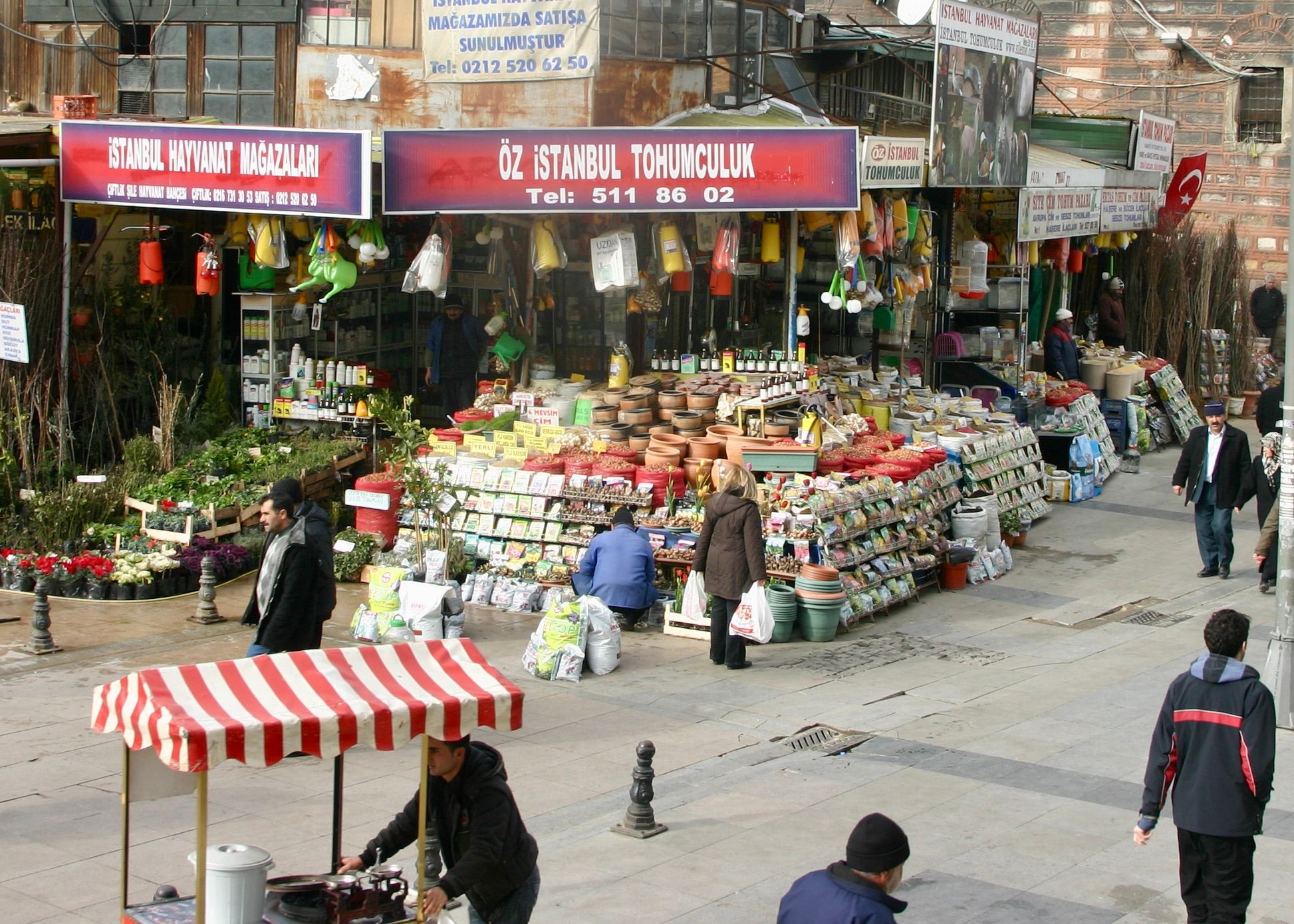 Street life thrives in the historic center of Istanbul. Middle Eastern bazaars are the epitome of exciting urban culture, with everything displayed outside on the street.