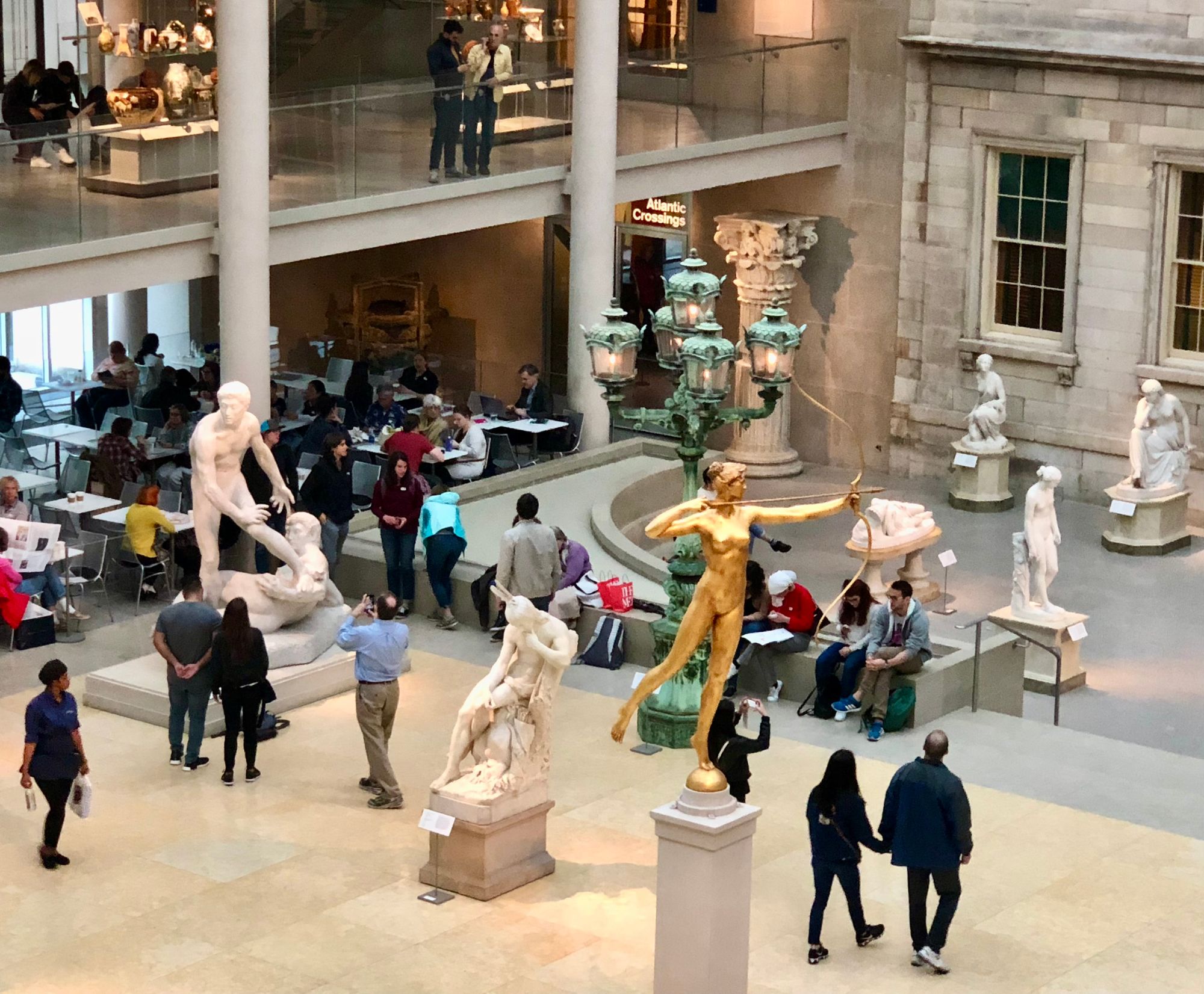 In a twist, the "courtyard" in the Metropolitan Museum of Art actually brings the "outside in" with an indoor space that looks like a classic Greek square, used for special events and socializing. Playing with the boundary between outdoors and indoors in this way makes a place more interesting and memorable.
