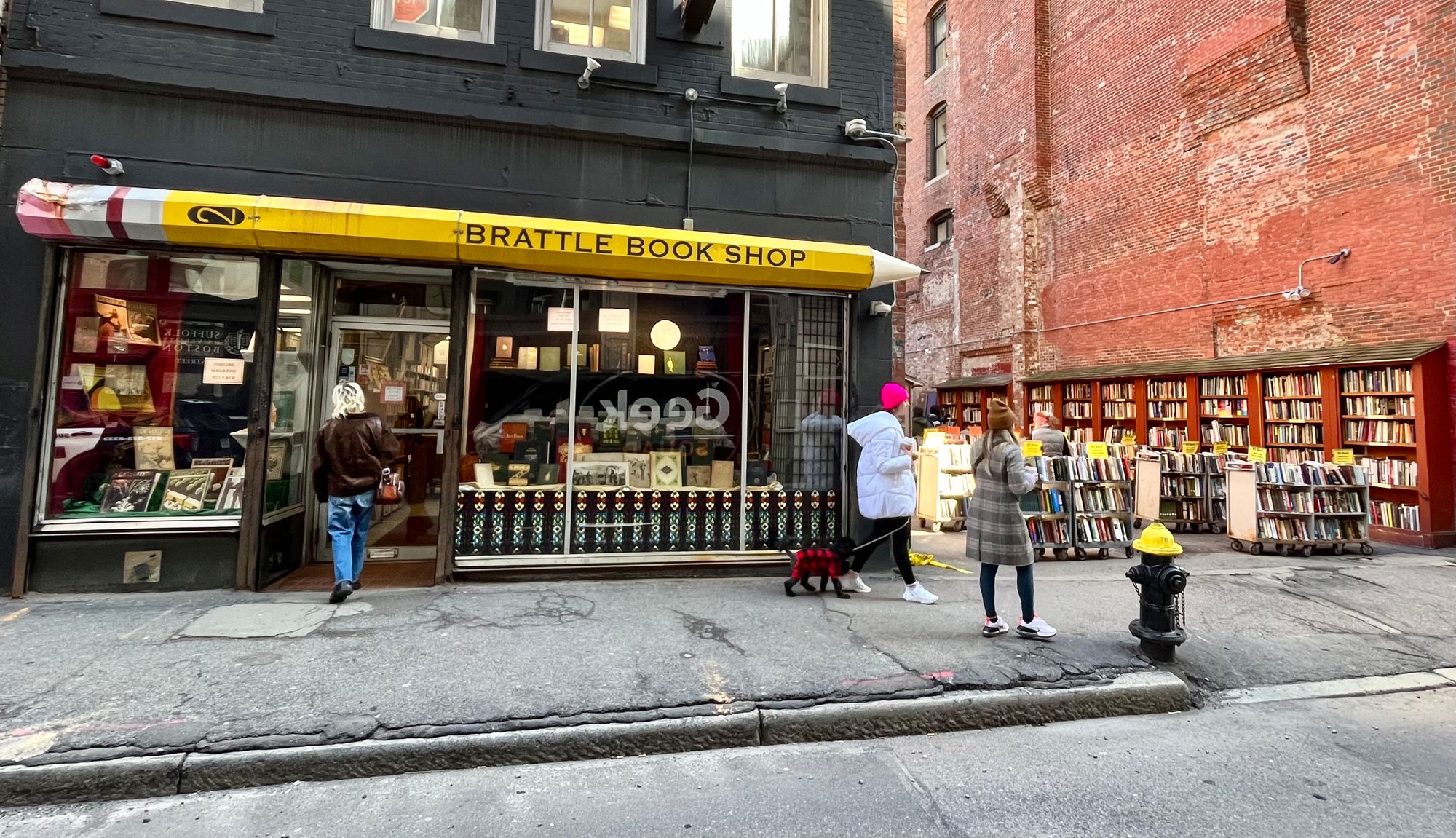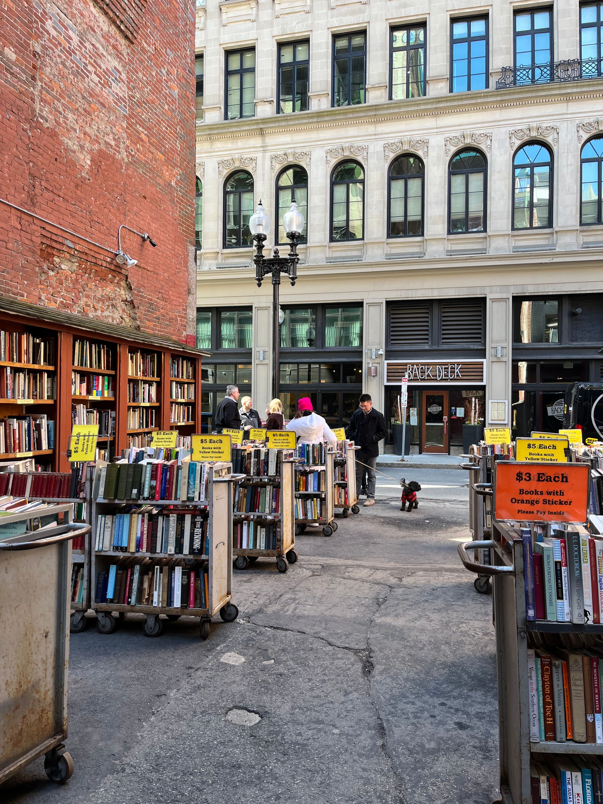 An example of an incredibly inviting storefront, Brattle Book Shop spills out into an adjacent alley with rows and rows of books to peruse.
